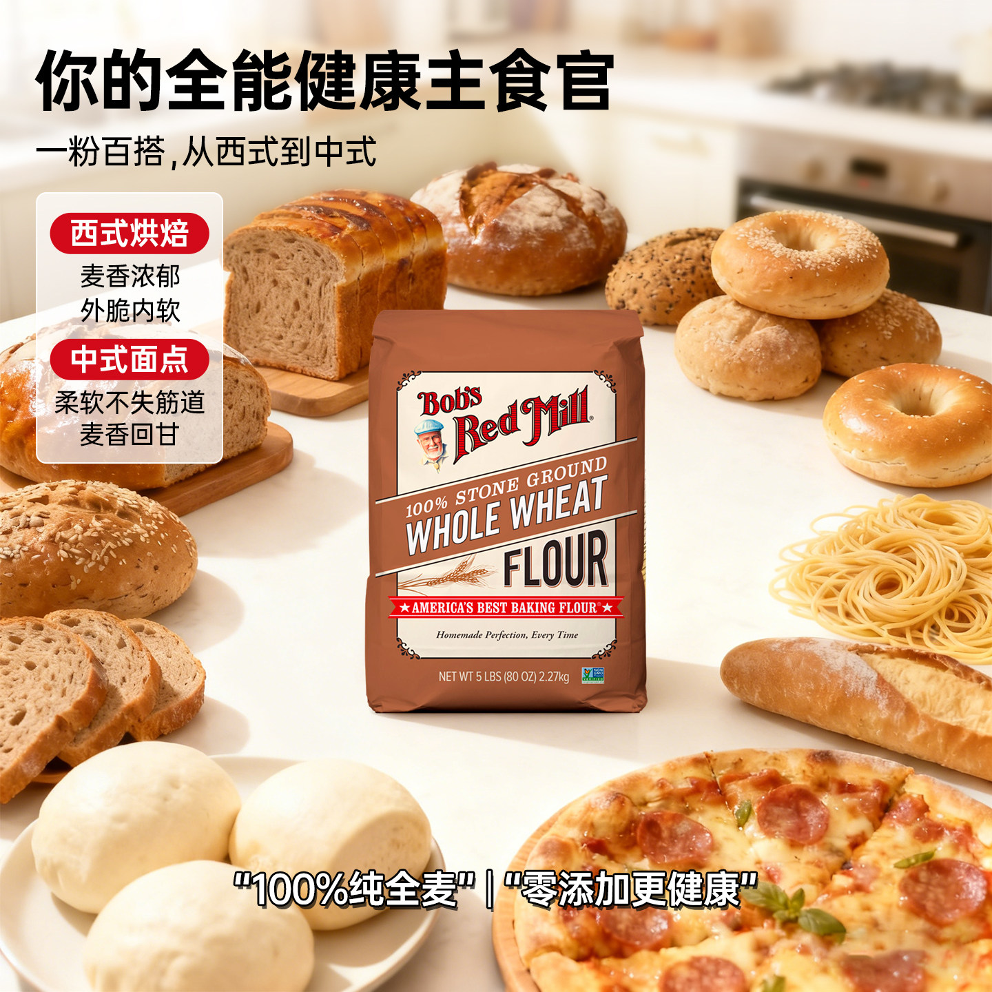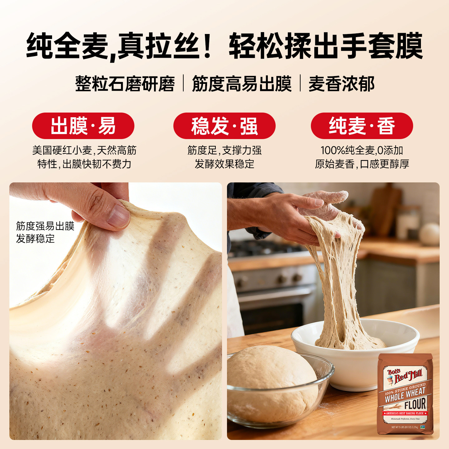 鲍勃红磨坊进口有机全麦高筋面粉欧包专用面粉家用小麦面粉5斤
