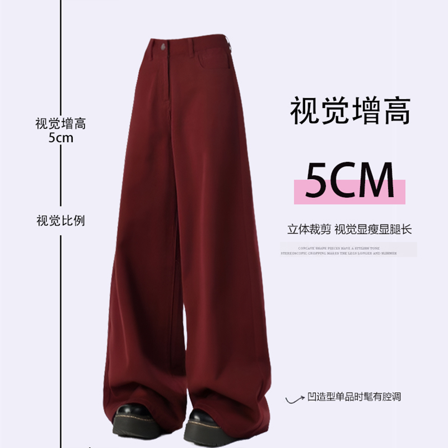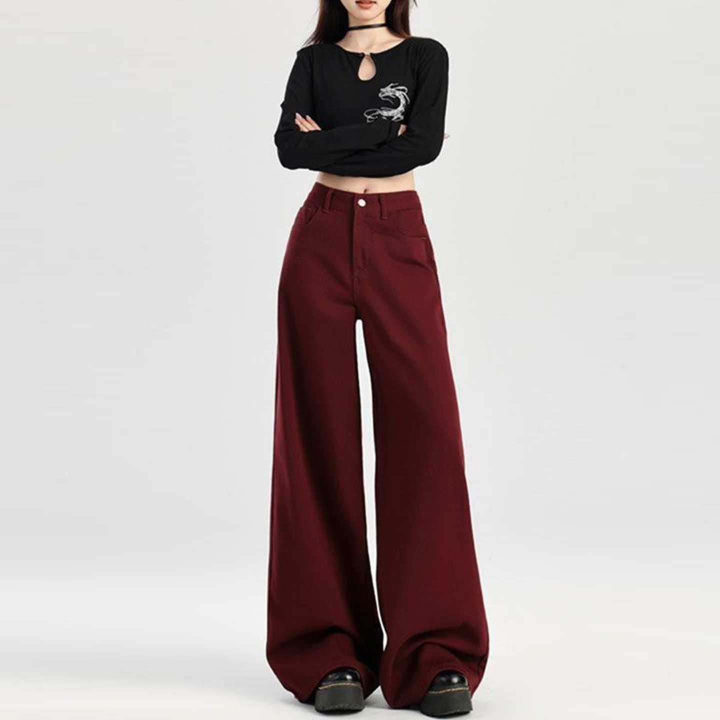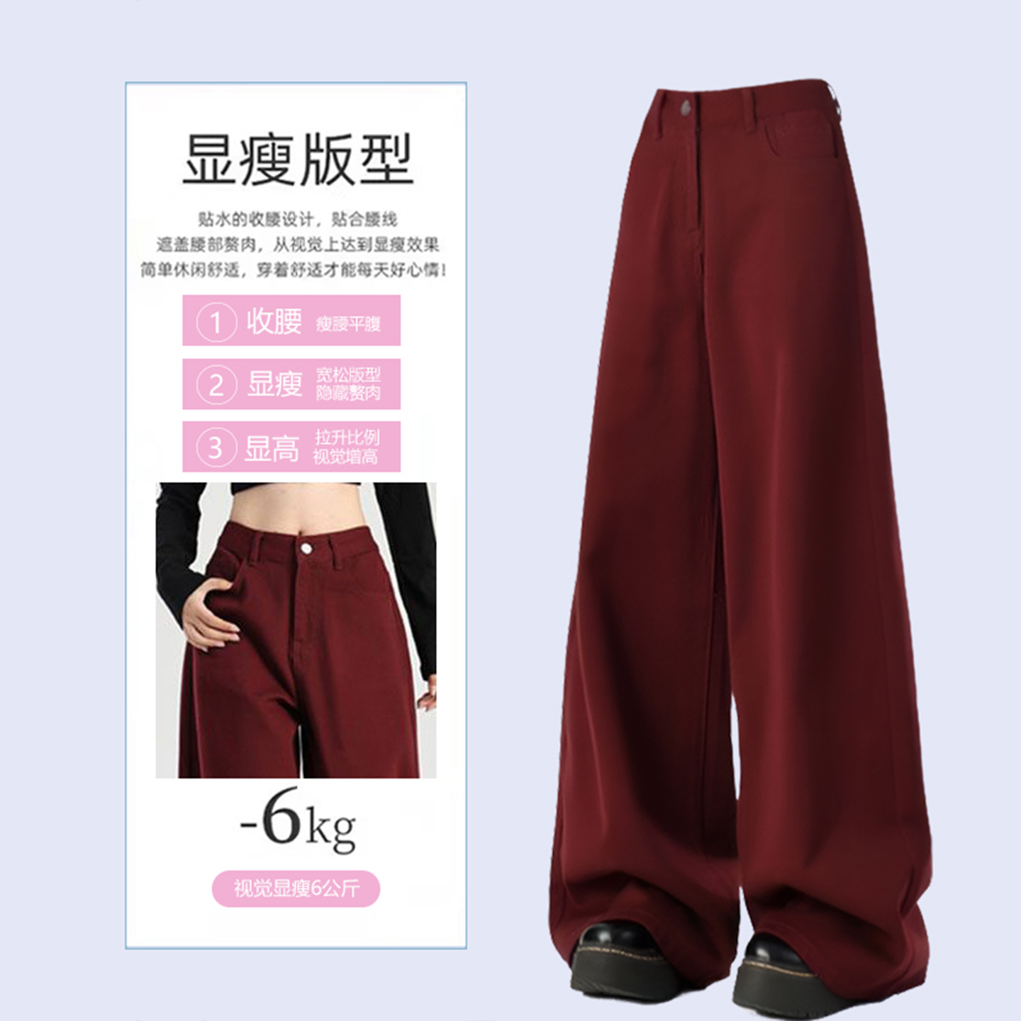 300斤大码女装学生直筒牛仔裤女胖mm安哥拉红裤子美式高街阔腿裤