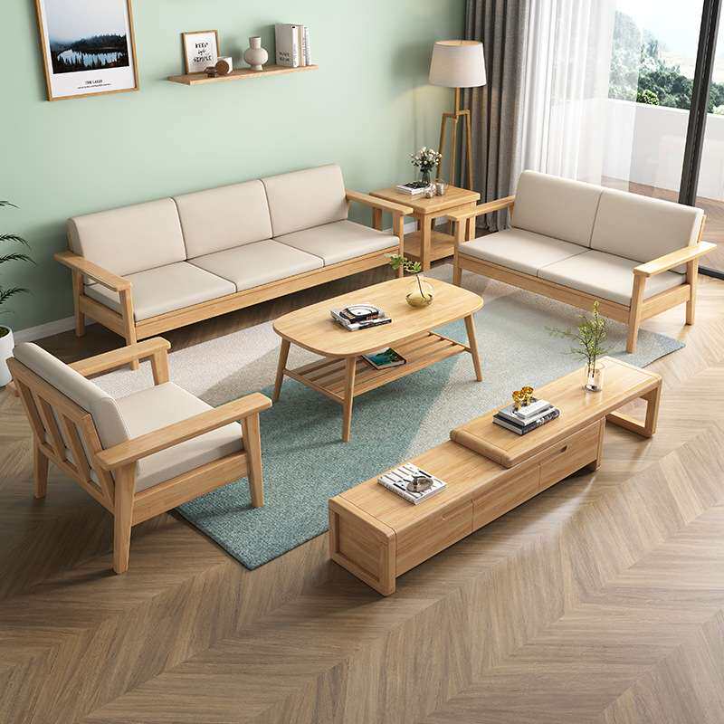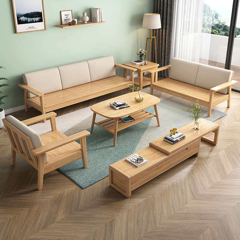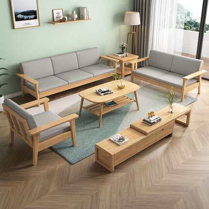原木风实木沙发组合北欧客厅简约现代小户型冬夏两用民宿日式沙发