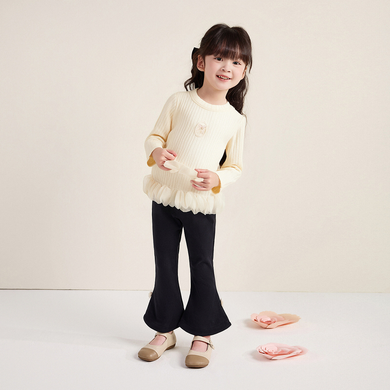 笛莎官方旗舰女童T恤秋季新款儿童女宝童装圆领长袖甜美可爱洋气