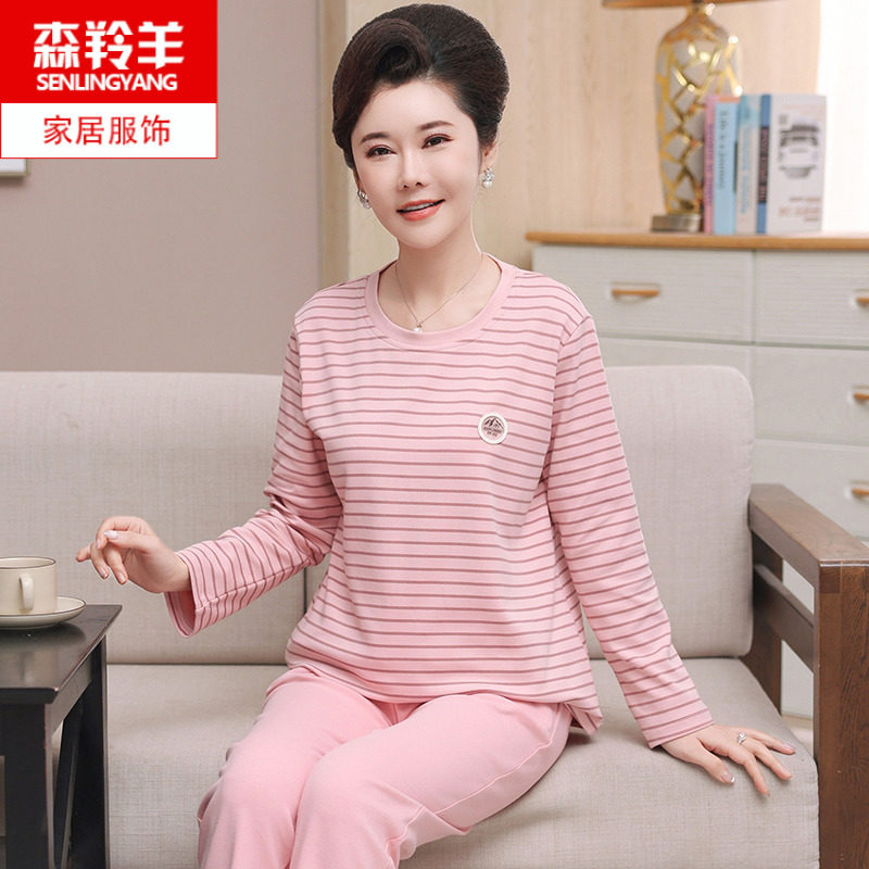 中年妈妈纯棉睡衣女休闲长袖大码春秋薄款高级感家居服套装可外穿