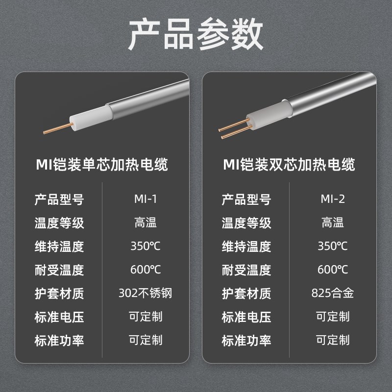 304不锈钢伴热带加热丝金属发热电缆耐高温加热线220/380v