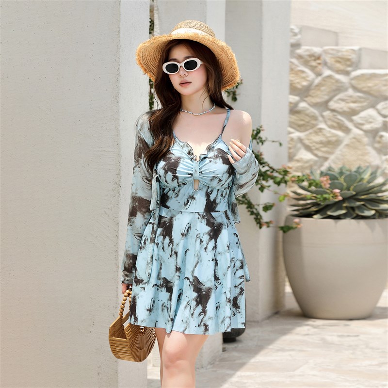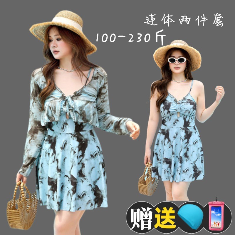 泳衣女连体裙式保守两件套200斤宽松遮肉显瘦防晒长袖2025年新款