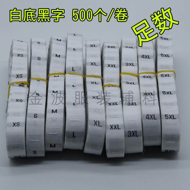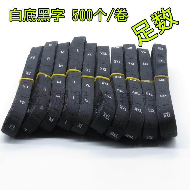 厂家布尺码标大小号服装裤子织唛标XS-7XL黑白色500个/卷现货