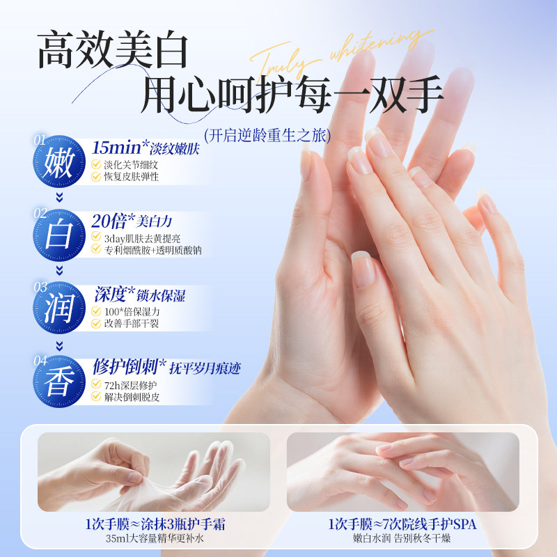 377美白手膜补水修复干裂粗糙淡化手纹手套女烟酰胺嫩白手部护理