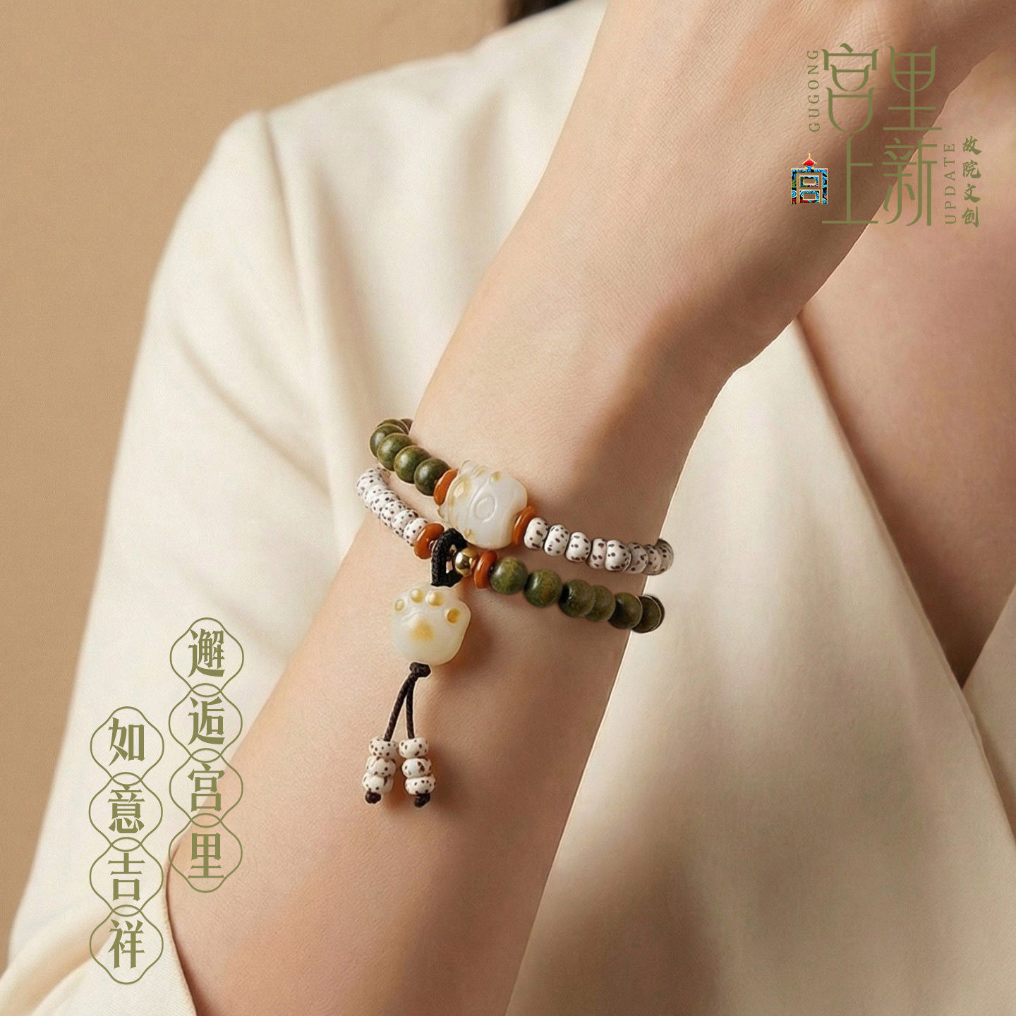 宫里上新猫爪绿檀手串生日礼物
