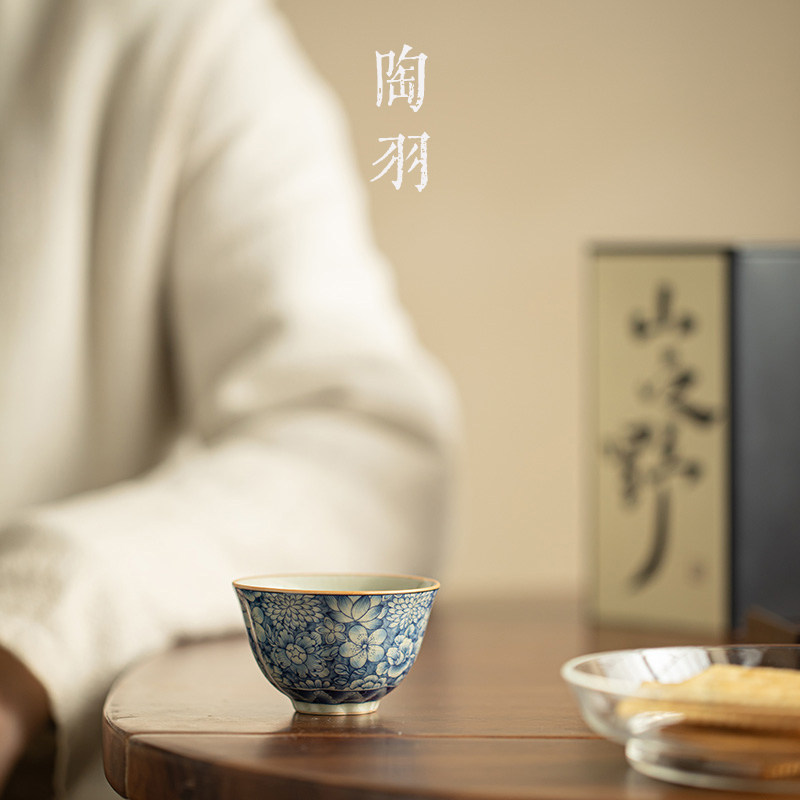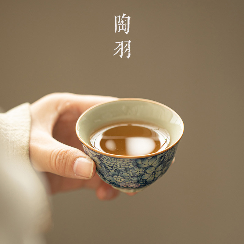 汝窑万花茶杯主人杯单杯开片茶盏个人专用喝茶杯功夫茶具品茗杯