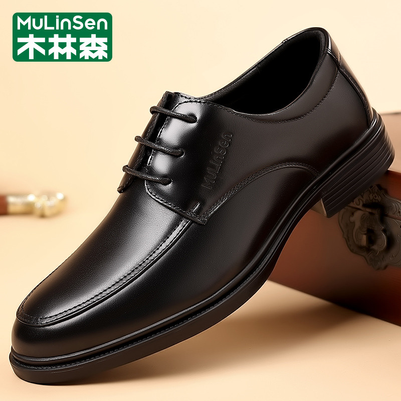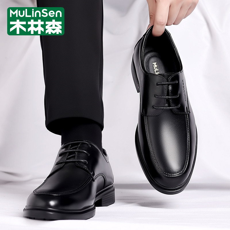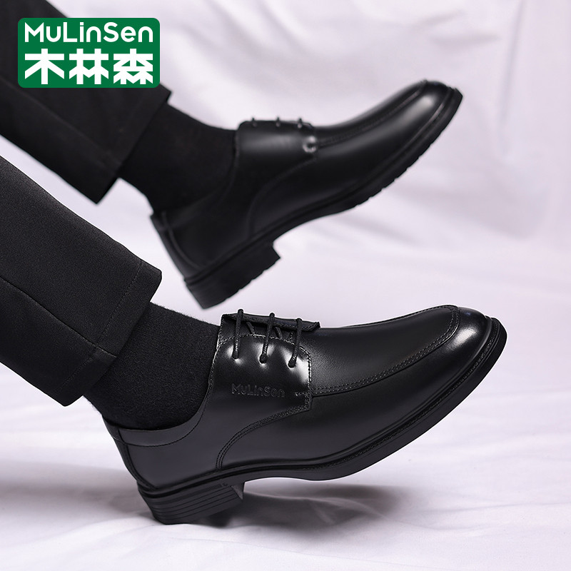 木林森皮鞋男冬季商务正装休闲德比头层牛皮厚底工装马丁爸爸潮鞋