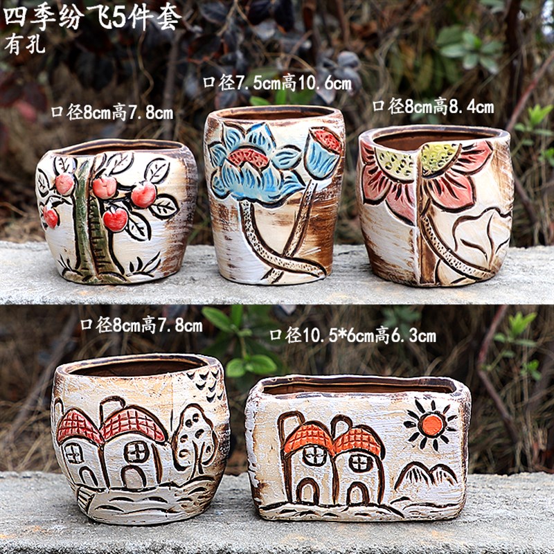 创意陶瓷花盆肉肉植物花盆多肉花盆个性透气手绘流釉复古小花盆