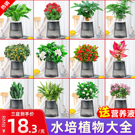 水培植物绿萝箩发财树多肉花卉绿植物室内小盆栽富贵竹文竹栀子花