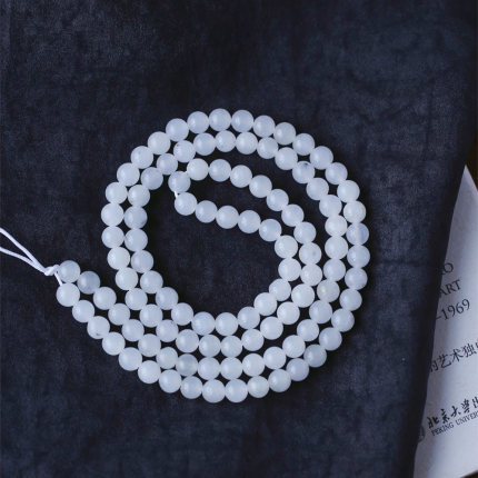 特价清货 有点平头 天然和田玉白玉圆珠款佛珠链 男女款玉石礼物