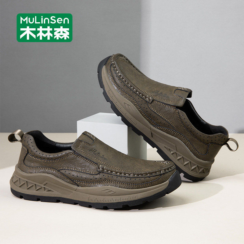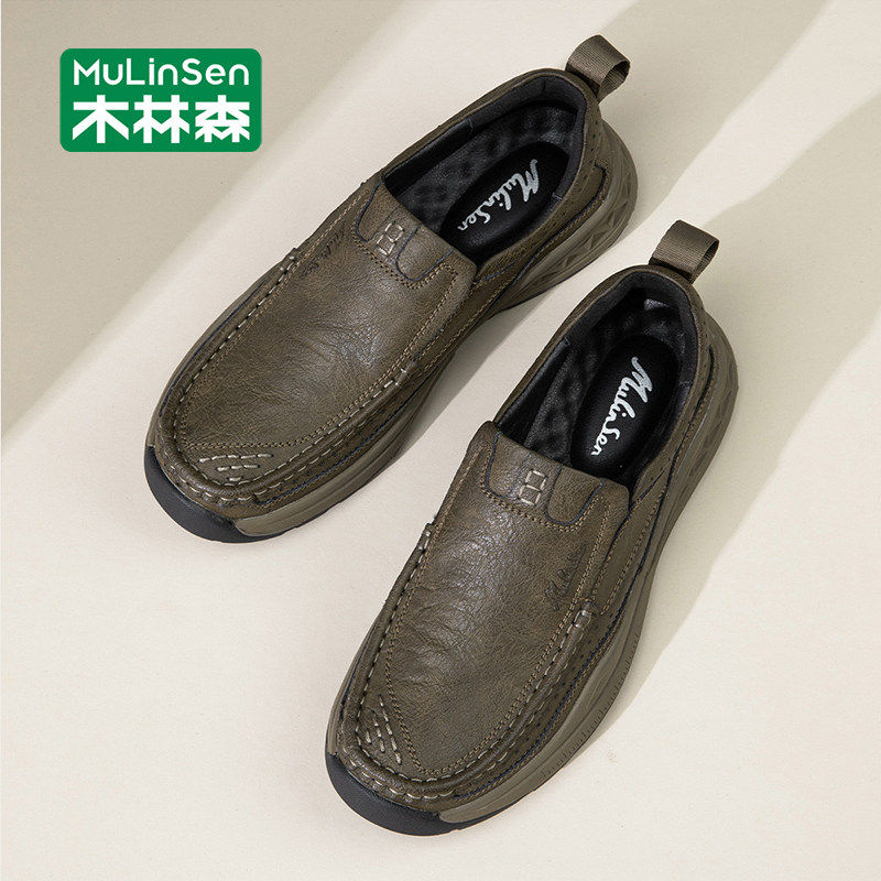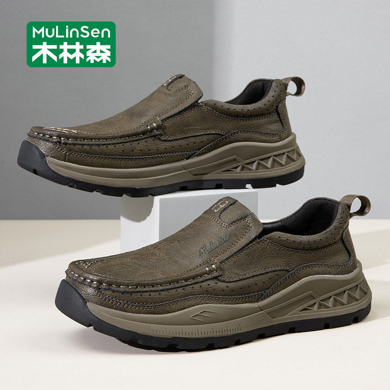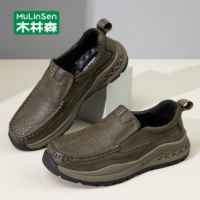 木林森皮鞋男款春季休闲运动真皮商务复古一脚蹬爸爸工作通勤潮鞋