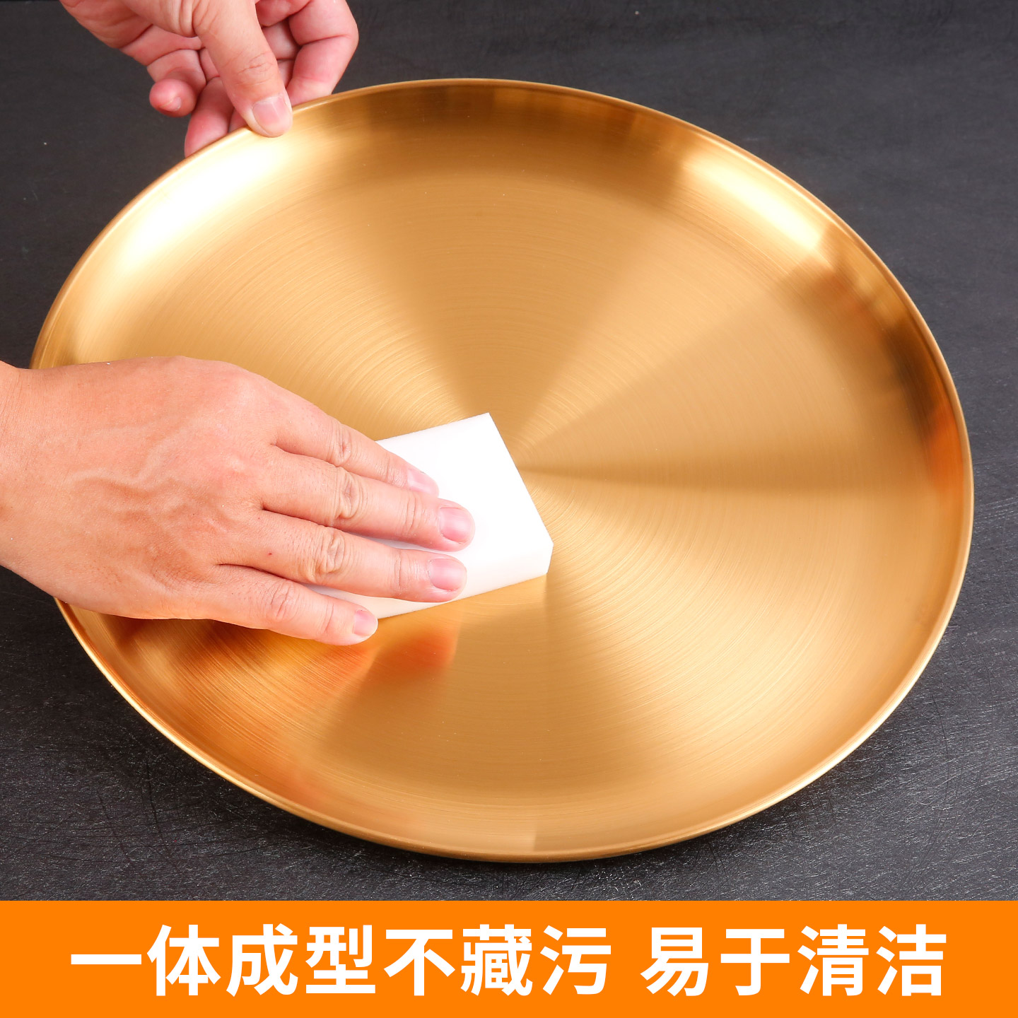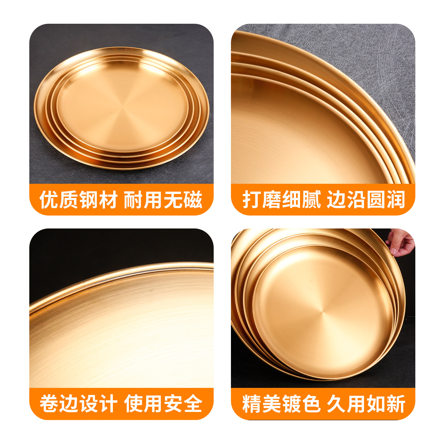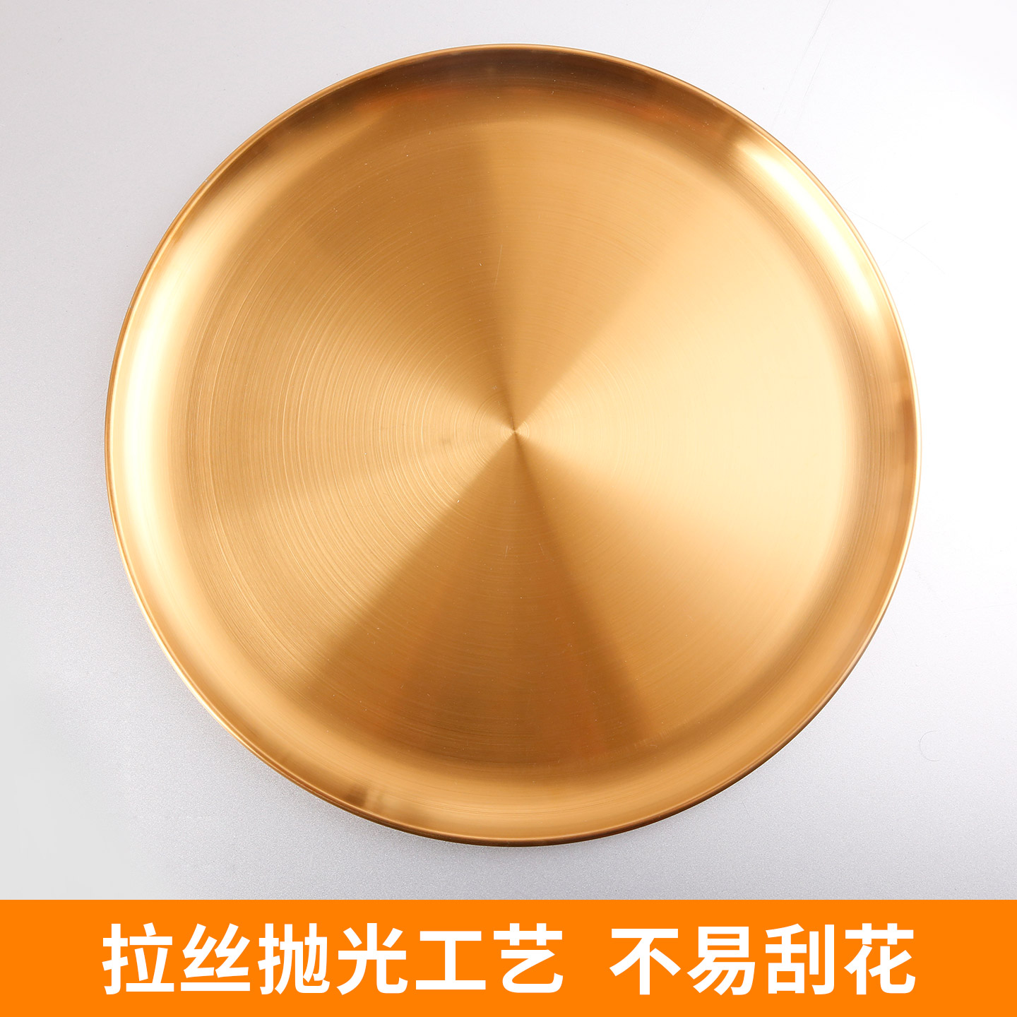 浅盘不锈钢大圆盘金属托盘磨砂圆形茶盘ktv餐厅摆盘商用底盘果盘