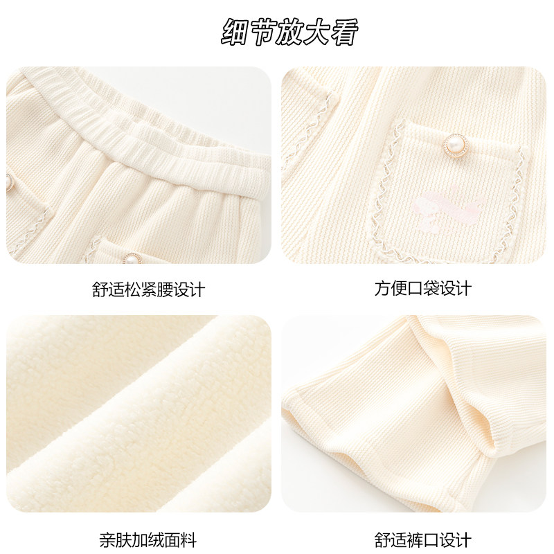 史努比女童裤子2025冬季新款儿童加绒加厚喇叭裤女孩冬装时髦长裤