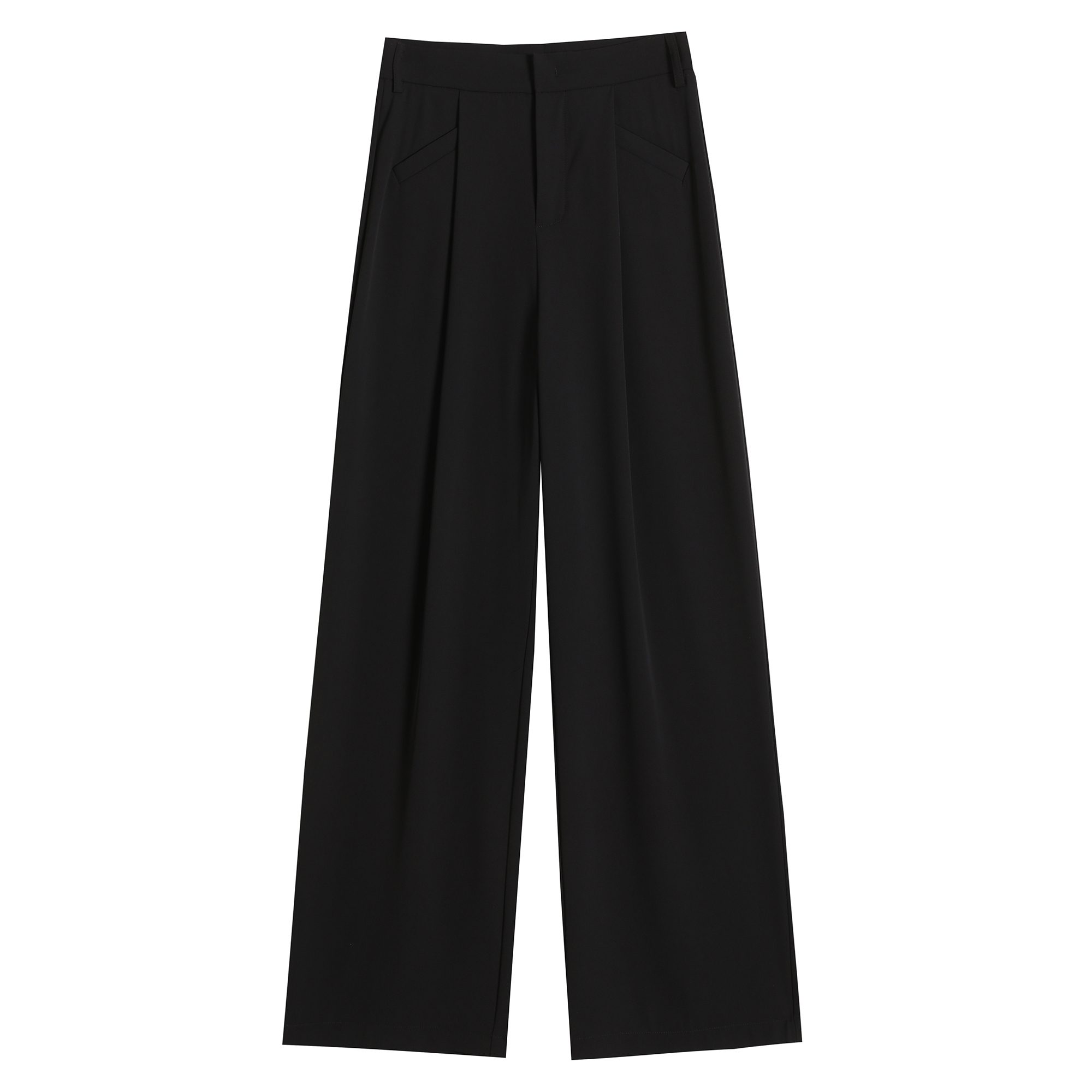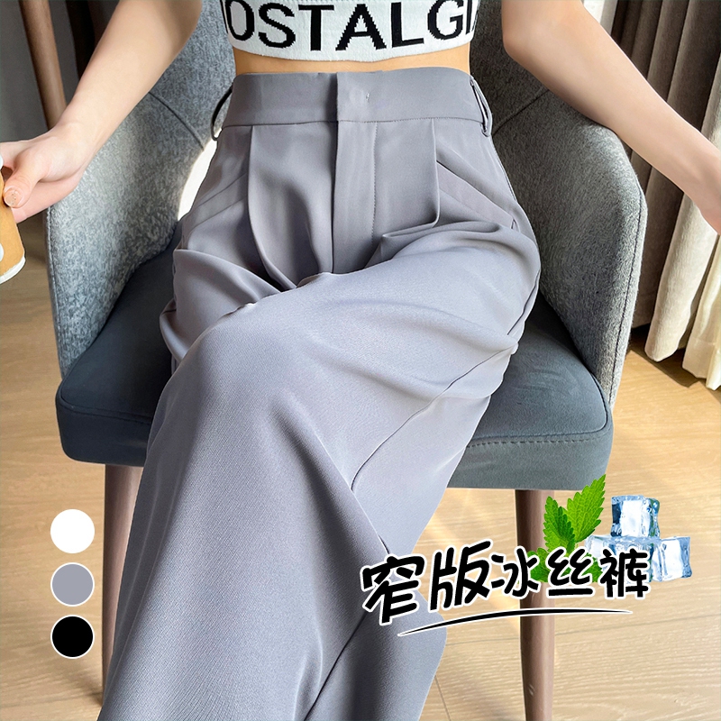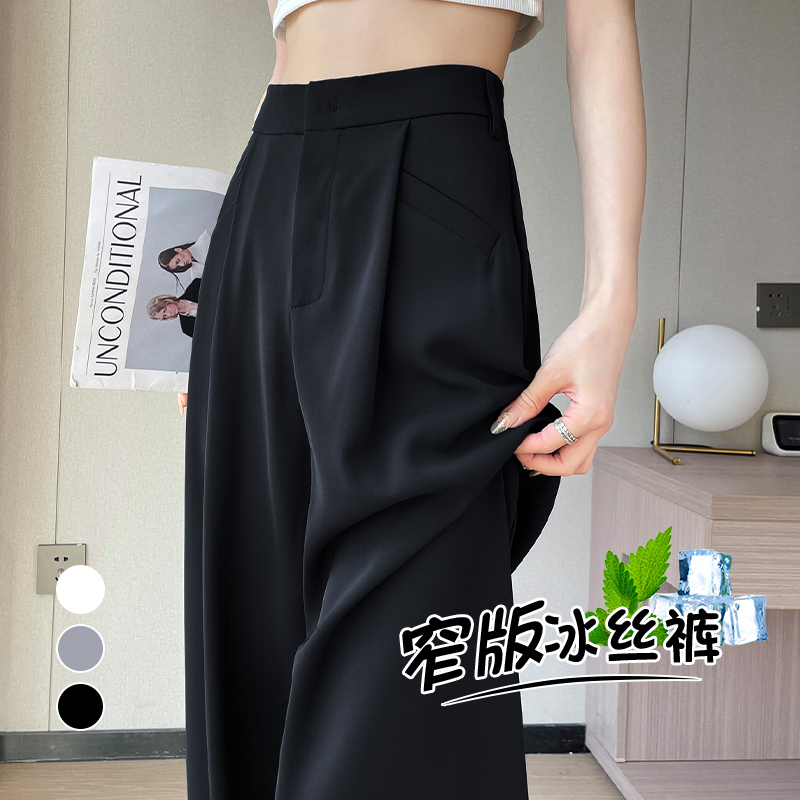 实拍2024夏季新款冰丝西装裤窄版阔腿裤高腰薄款拖地休闲裤女