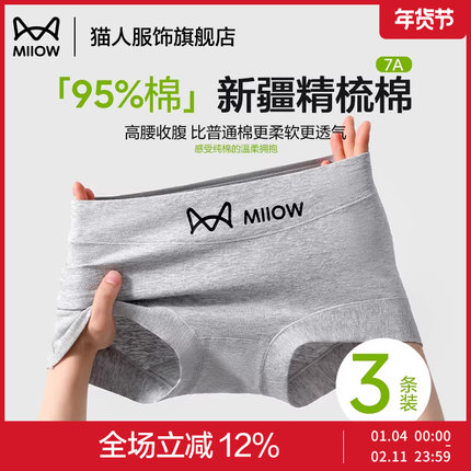 猫人高腰无痕抑菌平角裤女士内裤