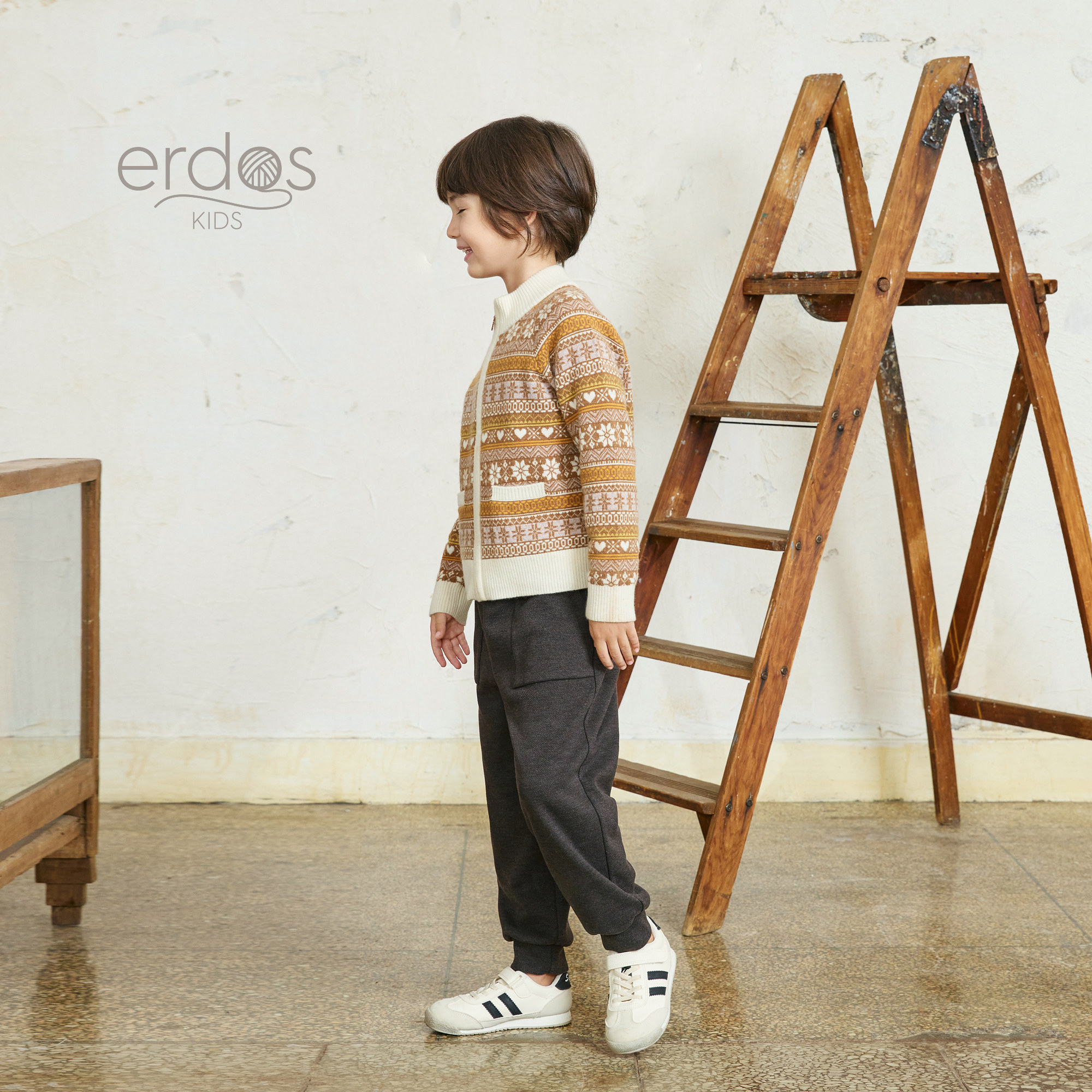 鄂尔多斯童装25秋冬新品羊毛混纺松紧腰束口男童运动舒适休闲裤