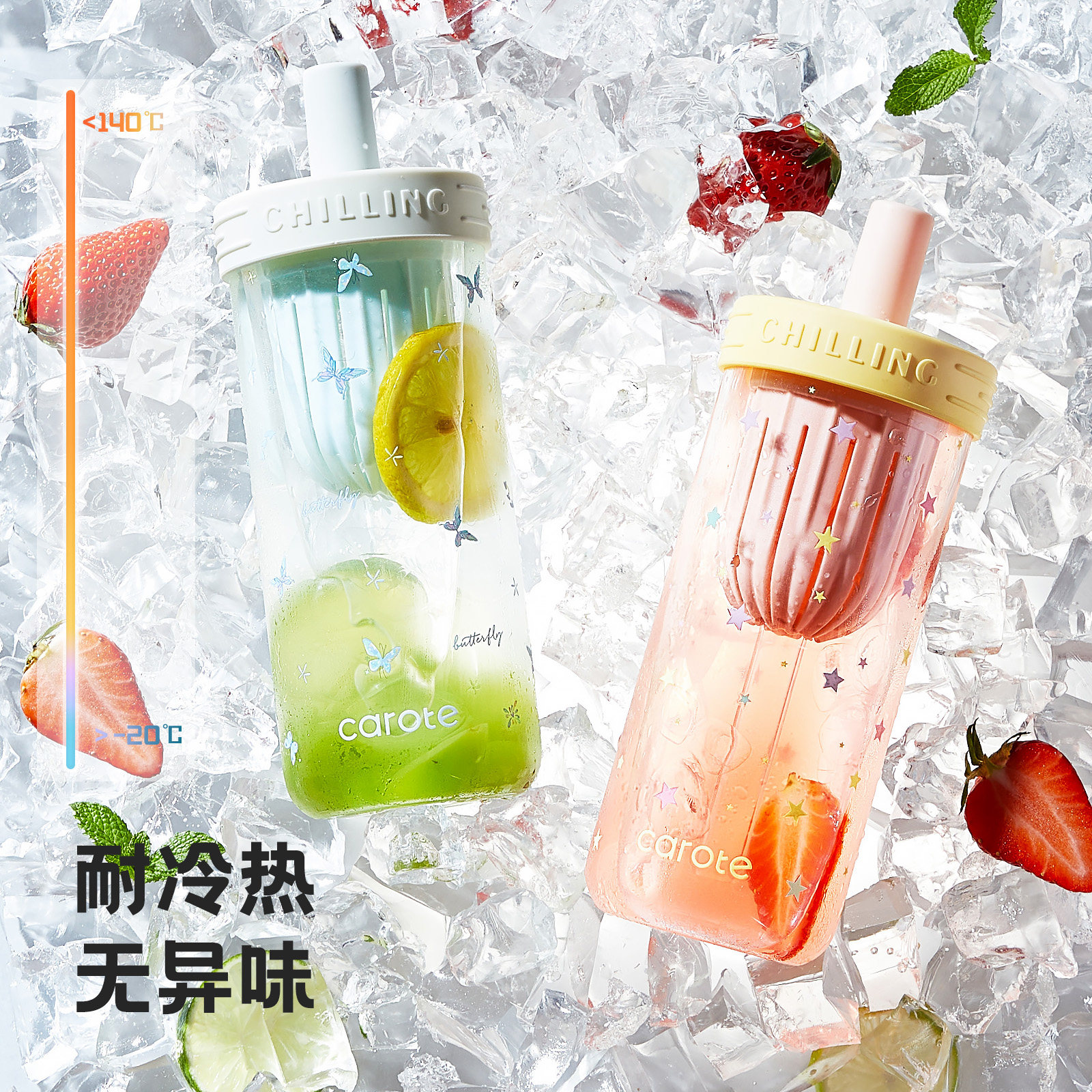 卡罗特玻璃杯女生高颜值大容量茶水分离吸管水杯夏日新款泡茶杯子