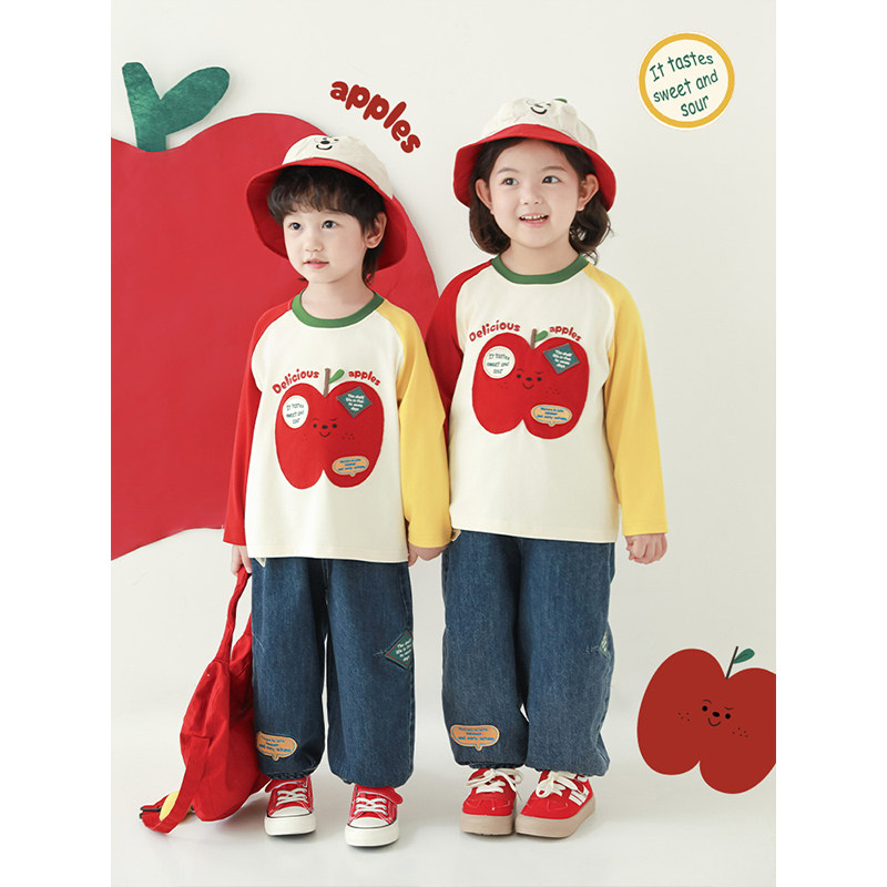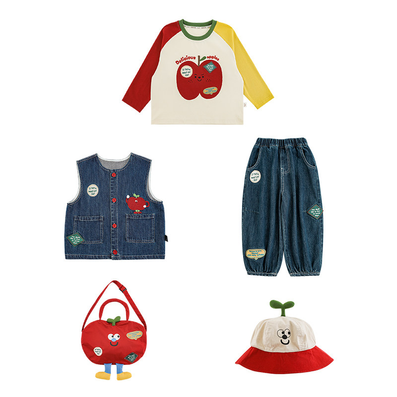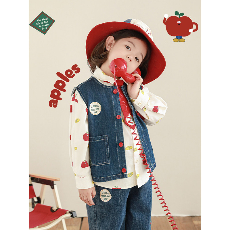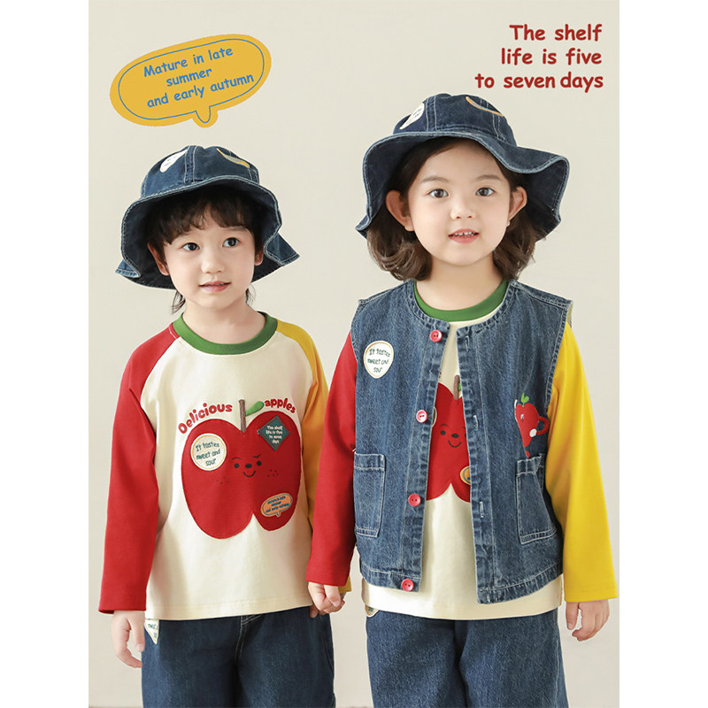 幼悠 女童苹果达人系列春季撞色插肩袖宽松T恤无袖牛仔马甲多件套