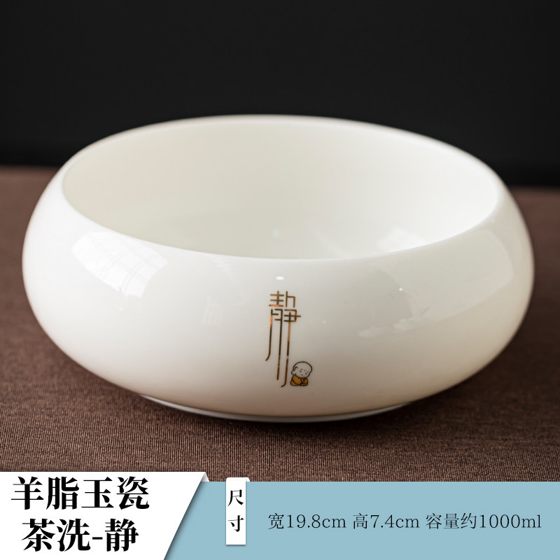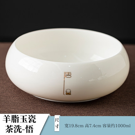 德化羊脂玉白瓷杯洗陶瓷茶道配件家用功夫茶具大号茶洗废水茶渣缸