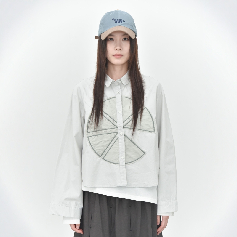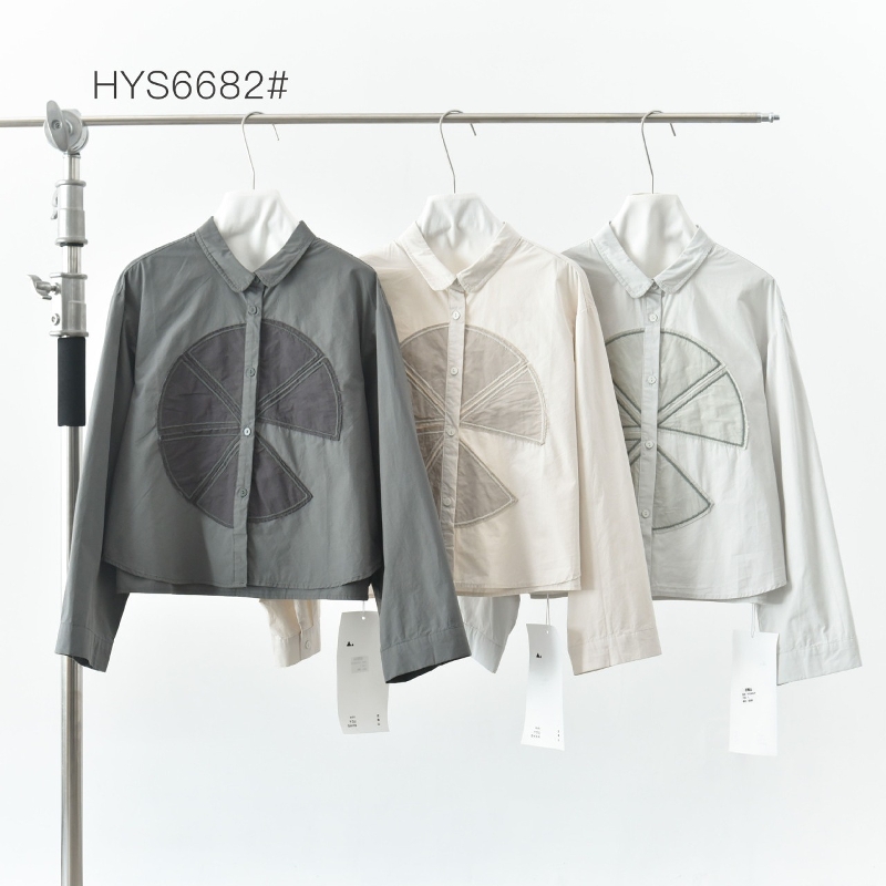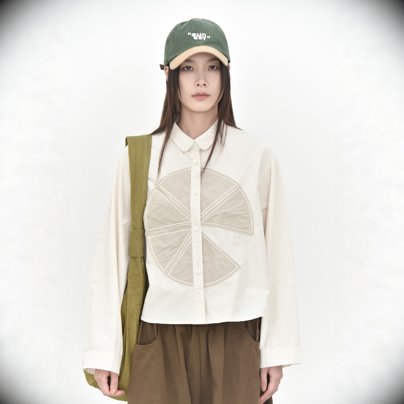还有山6682设计感撞色柠檬贴布长袖衬衣女复古休闲文艺风宽松衬衫