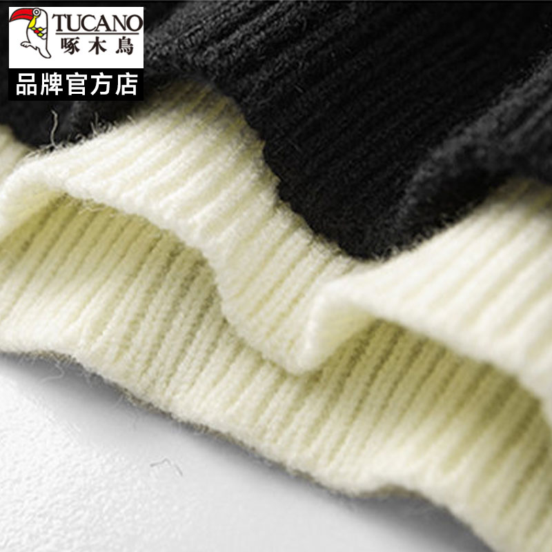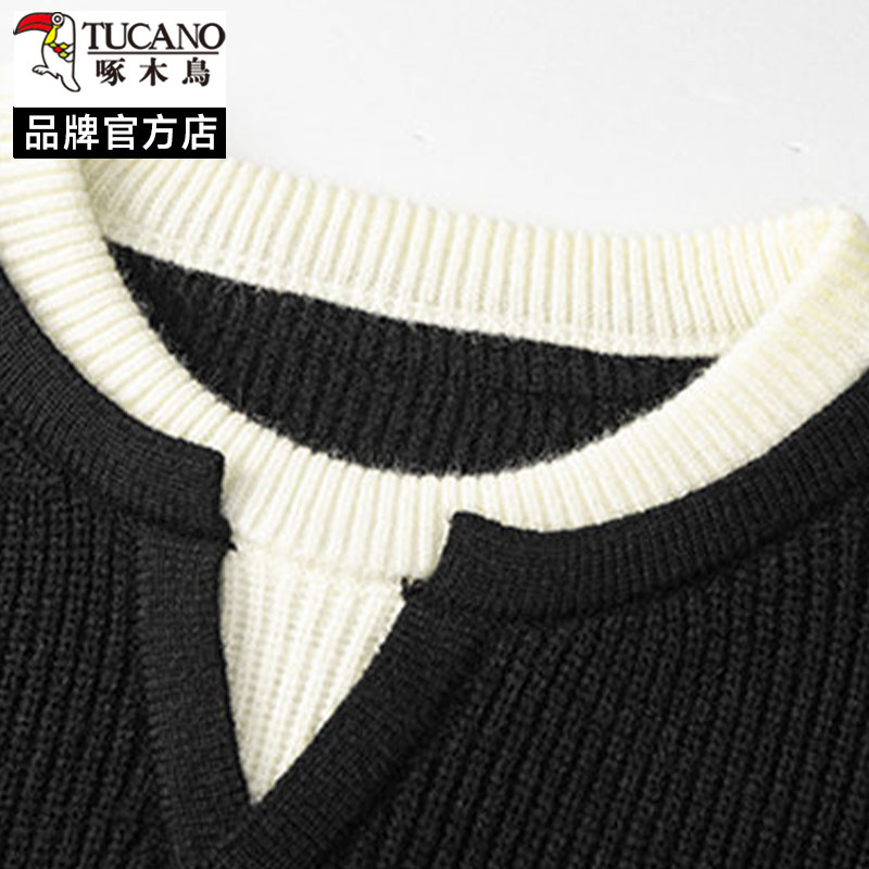 啄木鸟假两件圆领针织衫男士秋冬季加厚保暖宽松高级感毛衣慵懒风