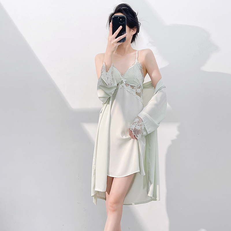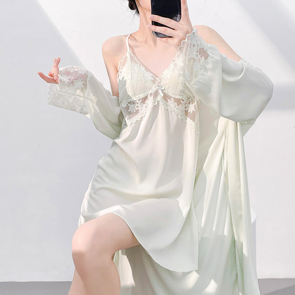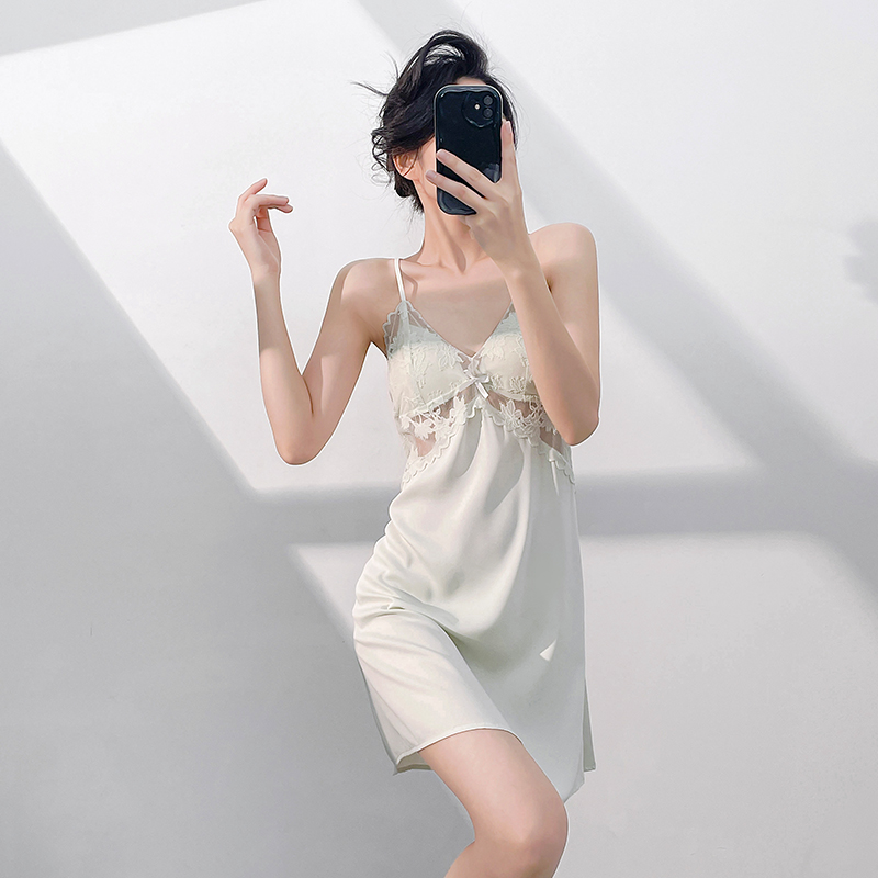 新款冰丝吊带睡裙女2025春夏性感睡衣带胸垫镂空睡袍薄款夏季