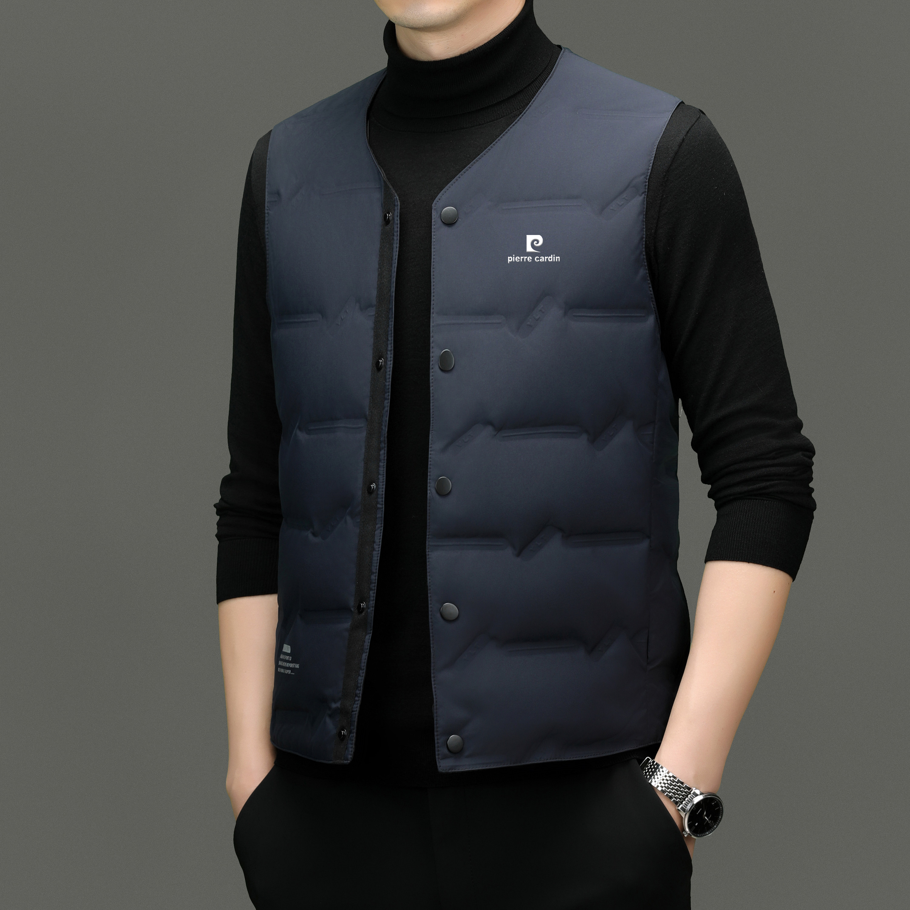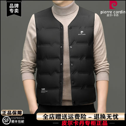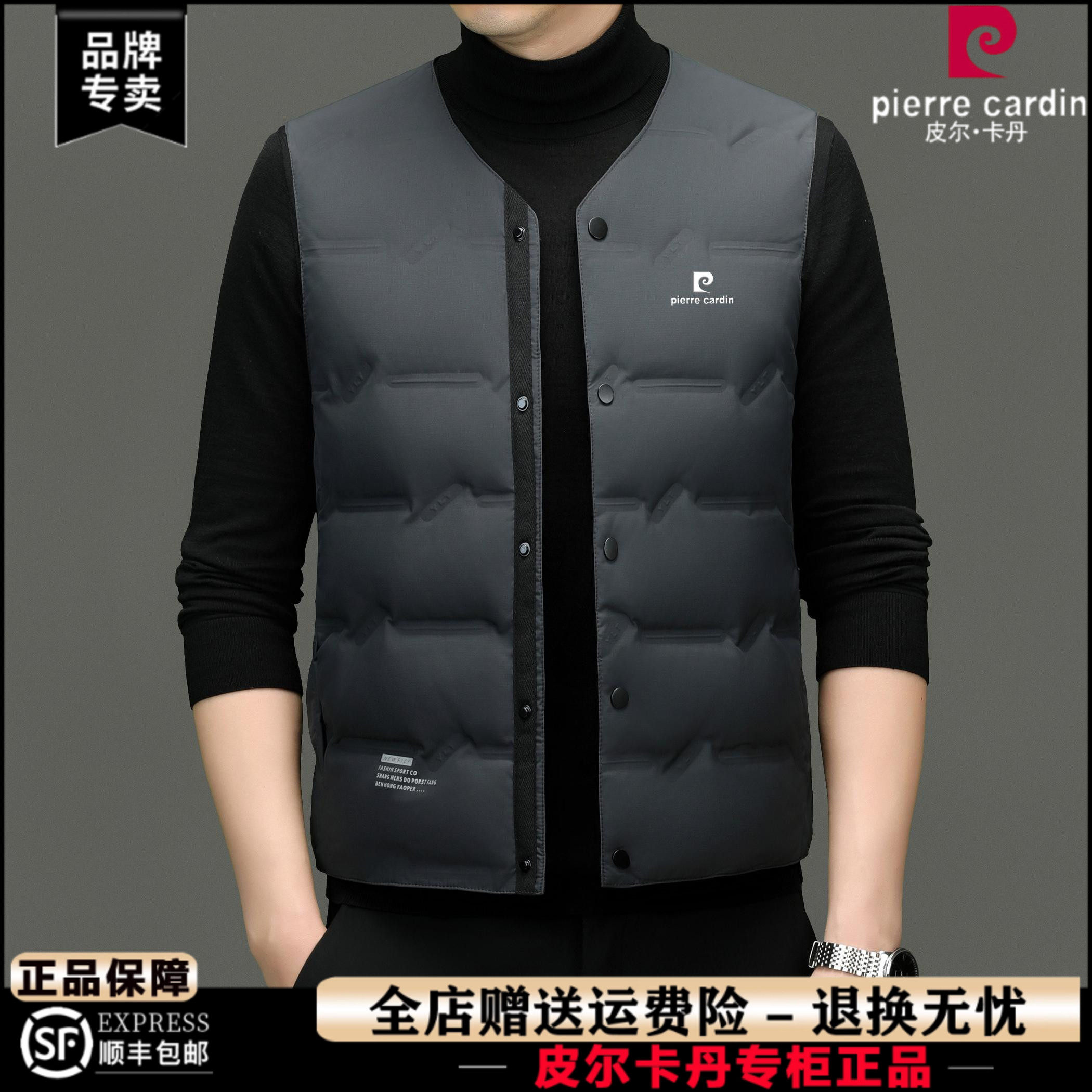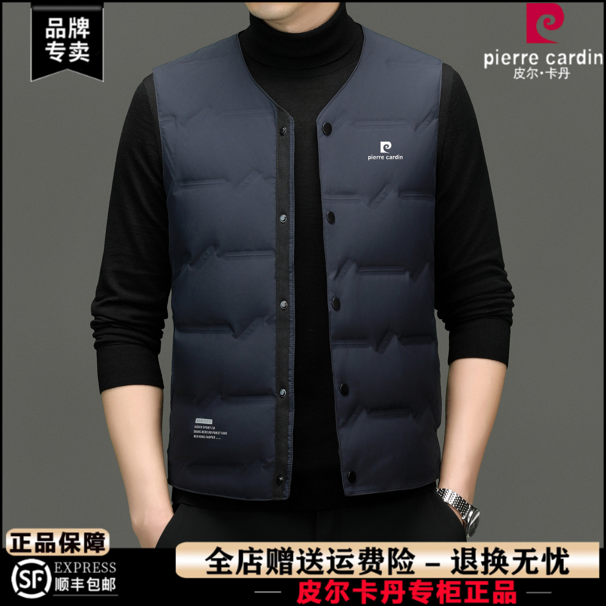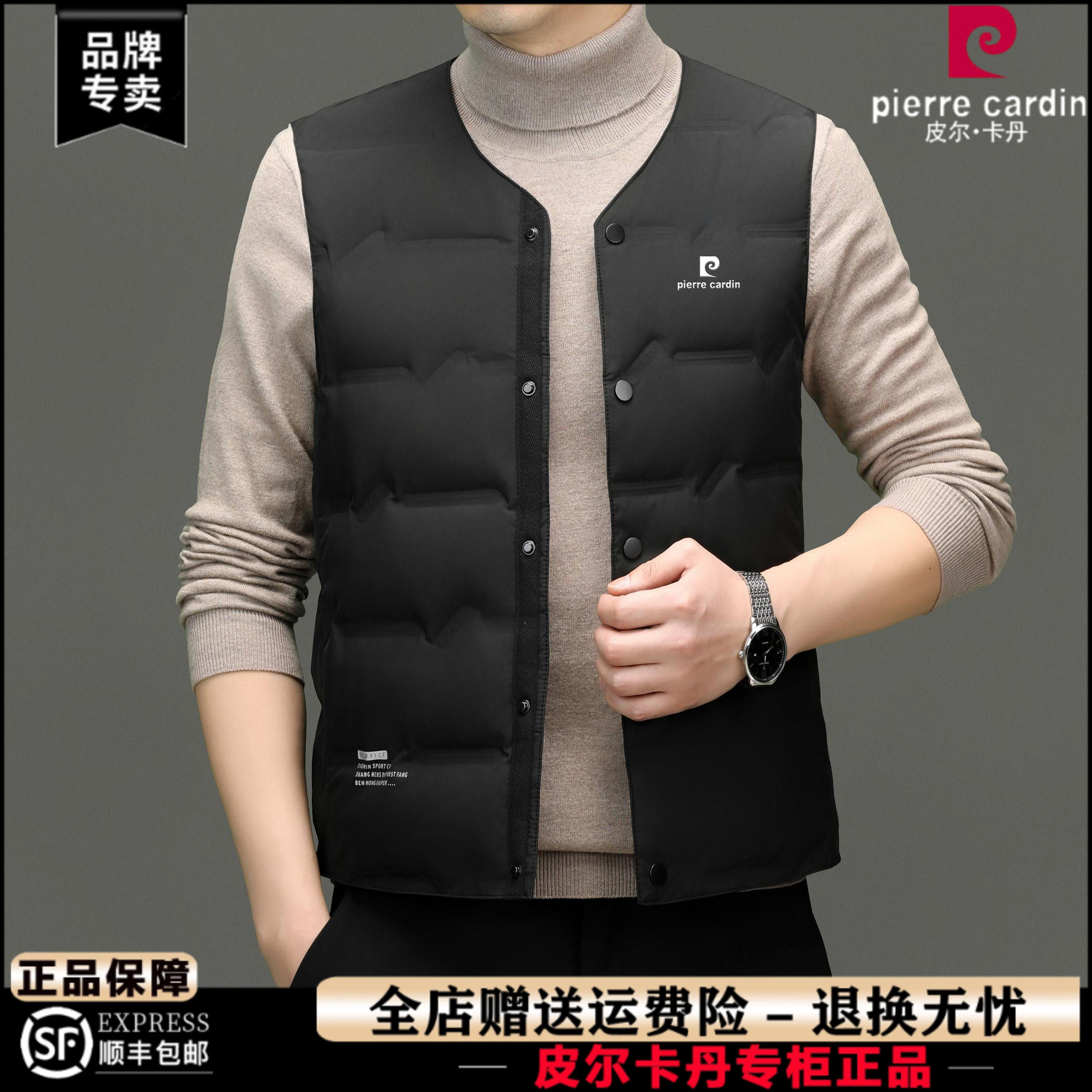 皮尔卡丹轻薄羽绒马甲男V领秋冬季新款中年商务休闲保暖羽绒背心