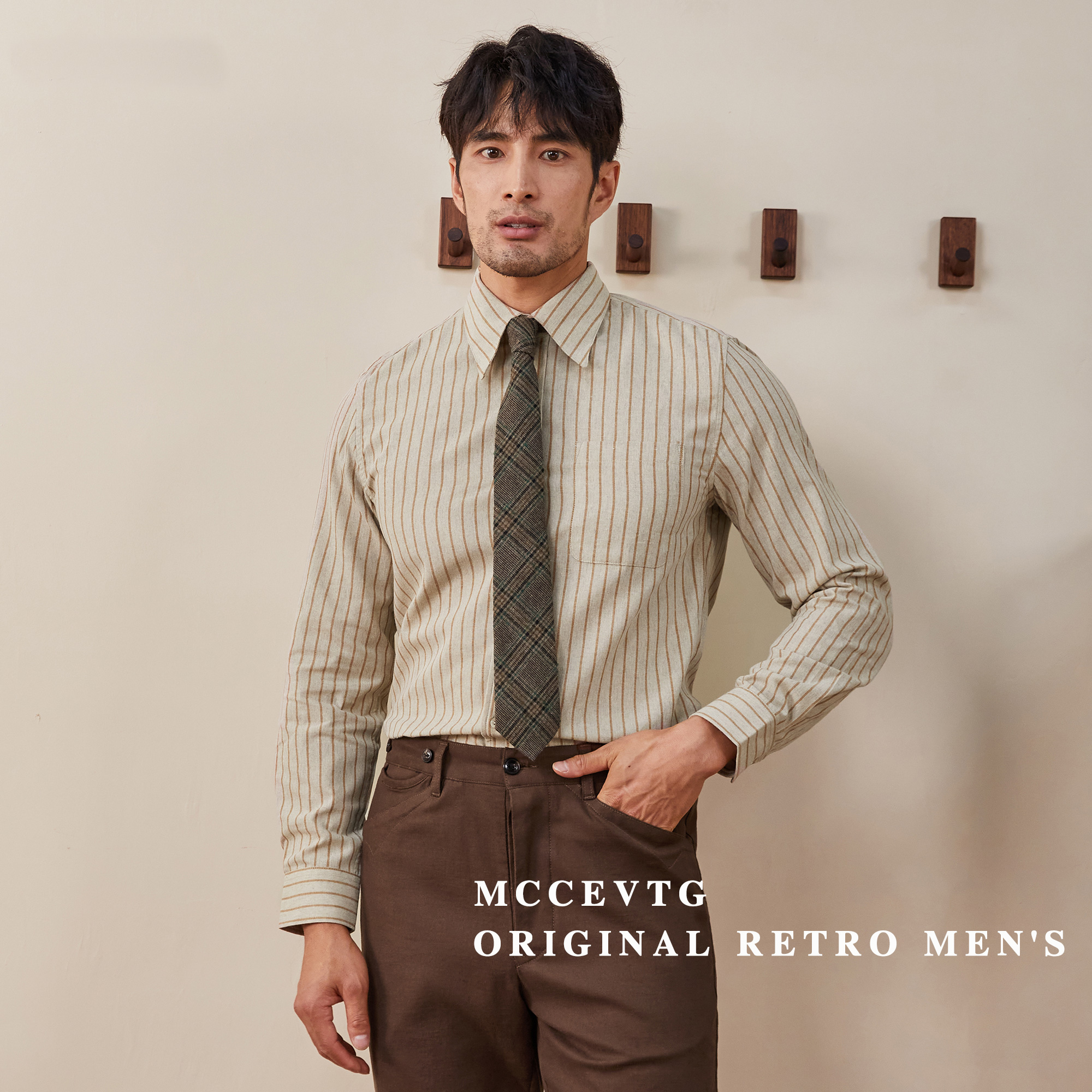 MCCEVTG男衬衫长袖条纹纯棉做旧