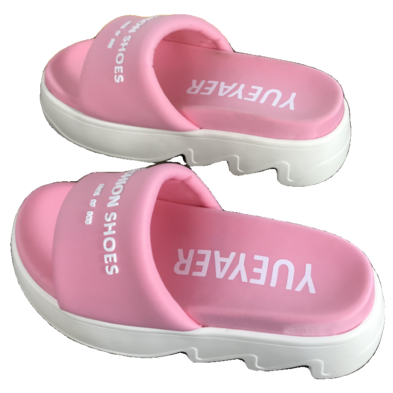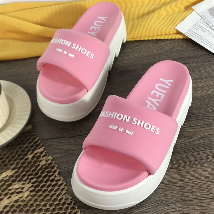 月芽儿正品撤柜2024夏季凉鞋粉色厚底一字拖鞋女真皮百搭松糕鞋女