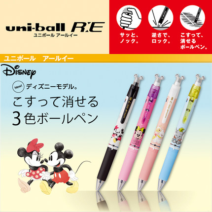 日本uni三菱限定版迪士尼多色可擦水笔URE3-600D三色可擦笔中性笔