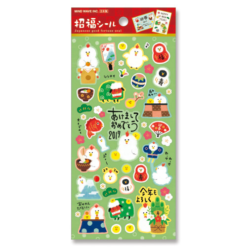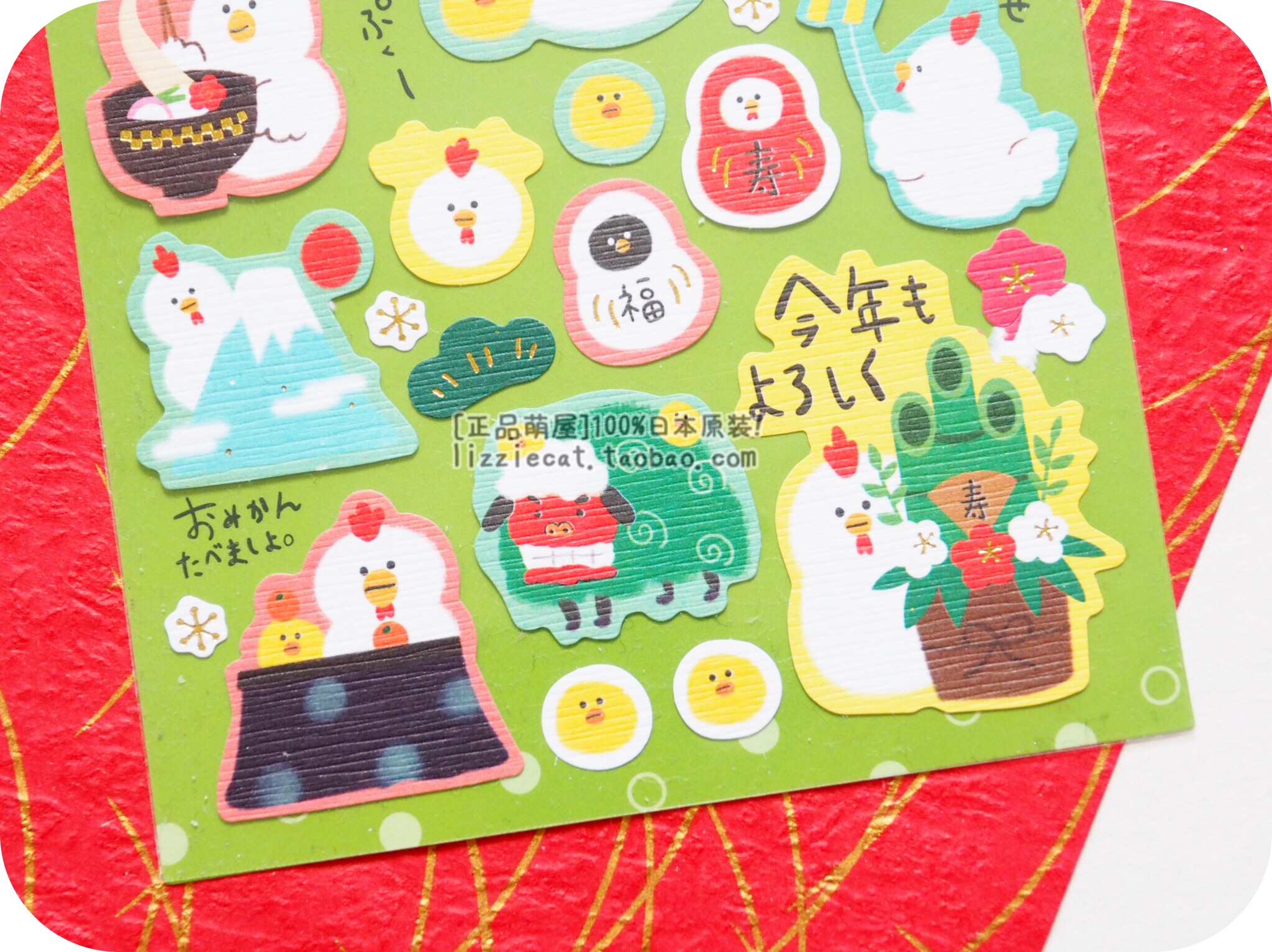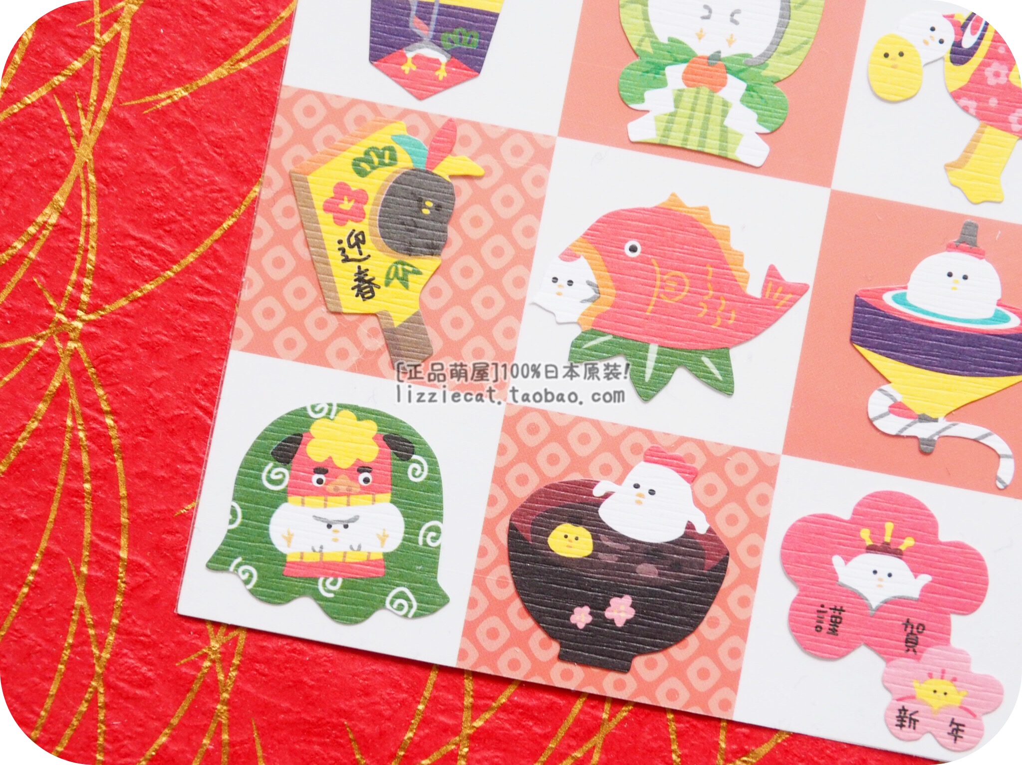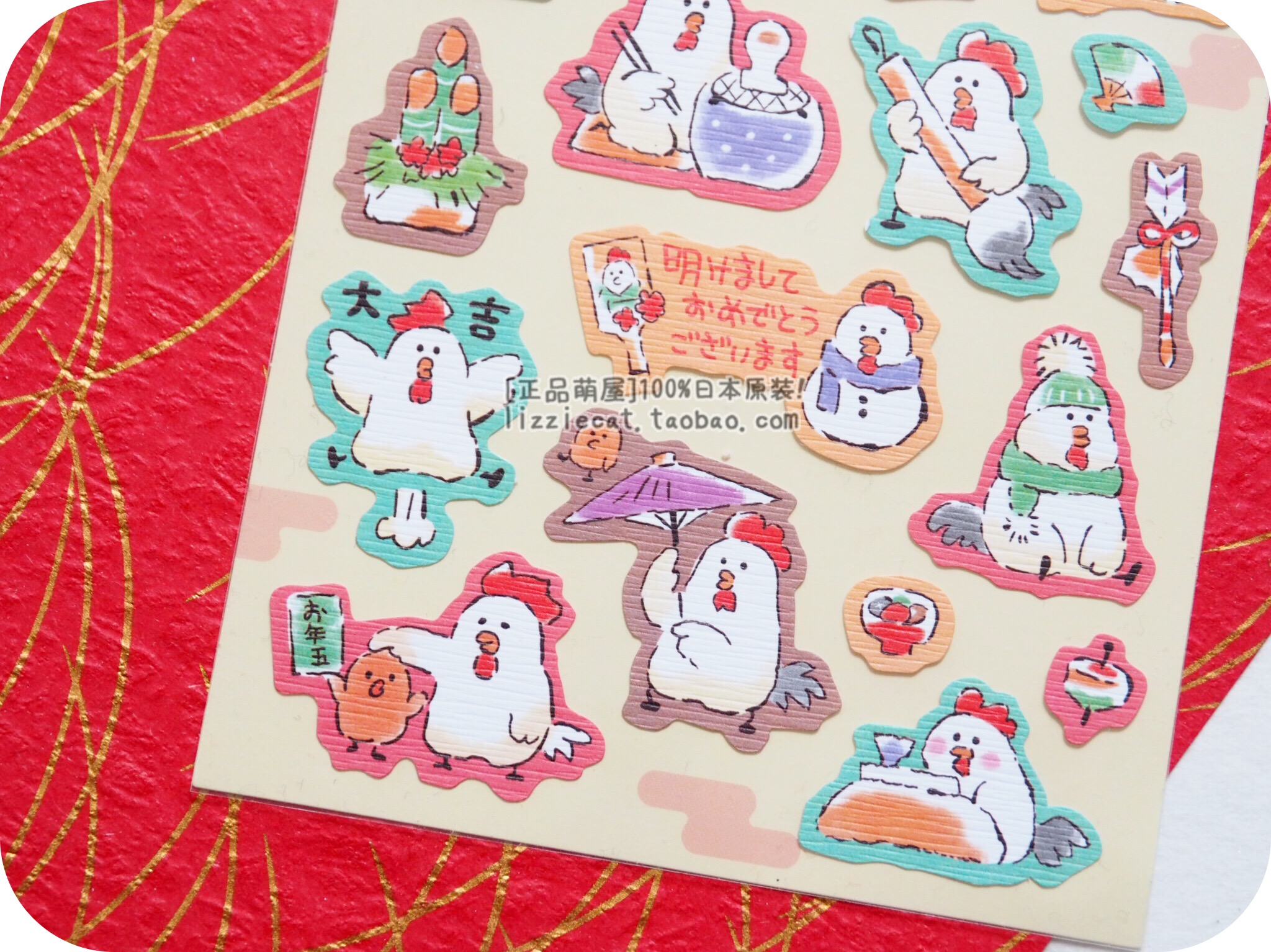 日本mw贴纸 烫金生肖小鸡年达摩迎春节招财猫DIY手帐日记相册装饰