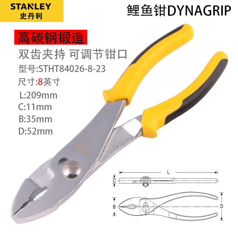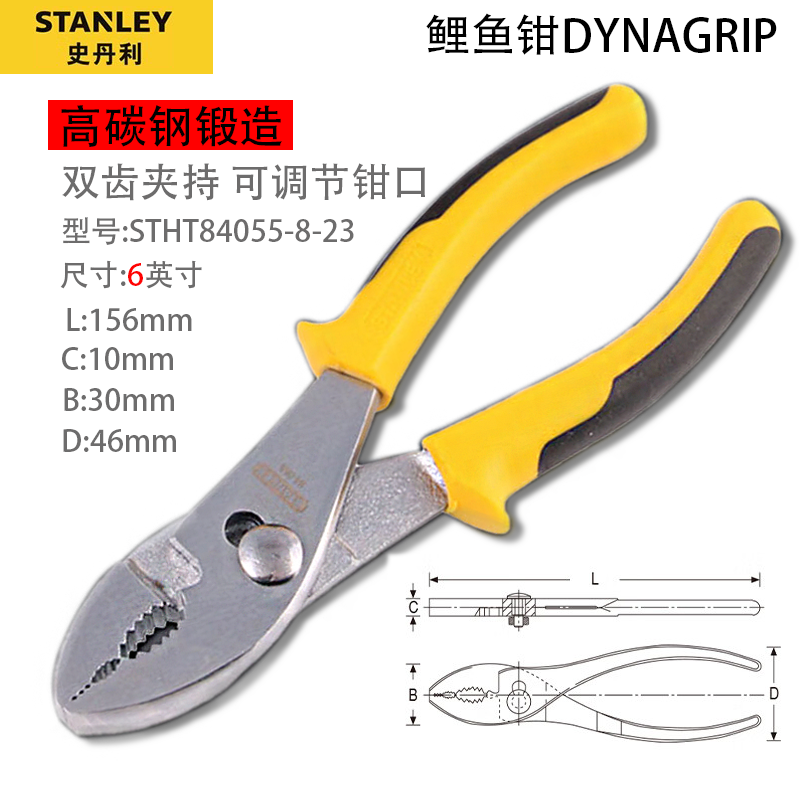 史丹利鲤鱼钳夹持工具鱼嘴钳鱼尾钳子小水泵钳水管钳子多功能