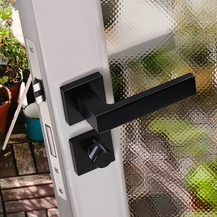 现代简约室内卧室门锁方面黑色静音房门锁太空铝实木门锁分体锁具