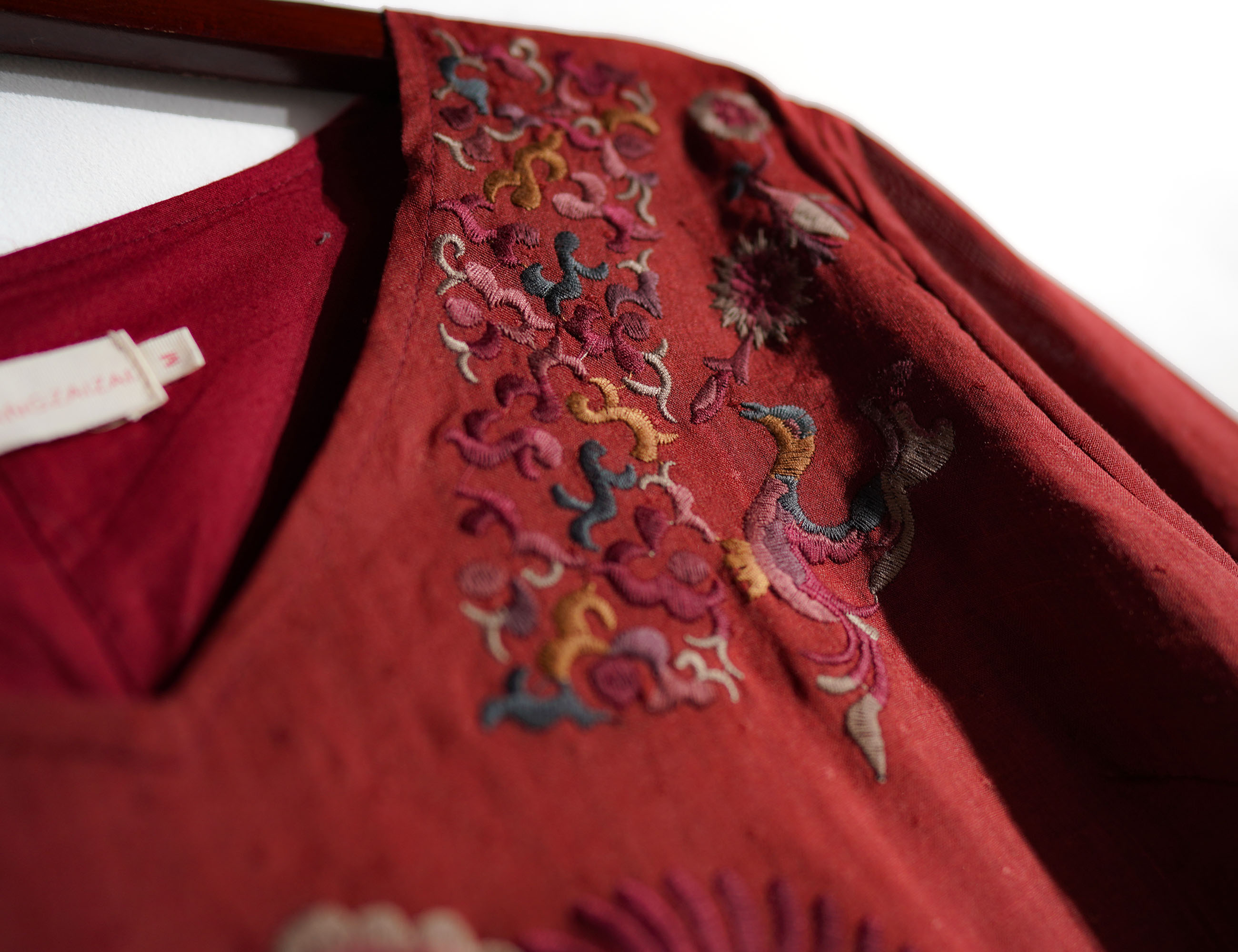 羊在在【草长莺飞】改良中式流苏刺绣连衣裙带腰带显瘦L080