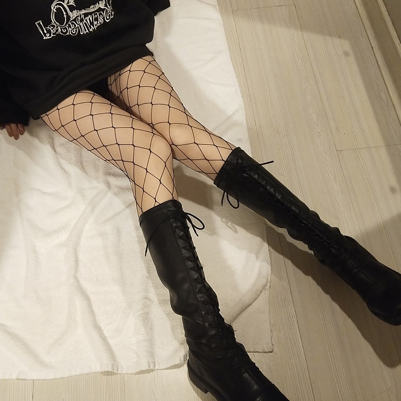 渔网袜jk黑丝袜女薄款网红格白色蕾丝黑色丝袜ins潮辣妹夏季性感