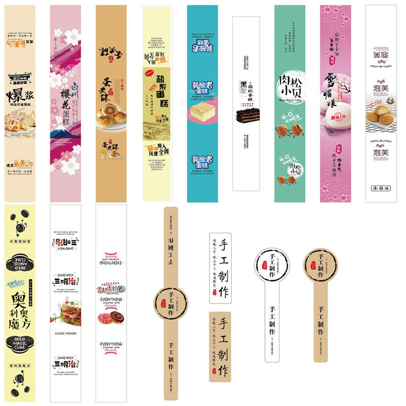 烘焙包装 圆形长条不干胶贴纸 西点蛋糕食品吸塑盒饼干罐装饰标签