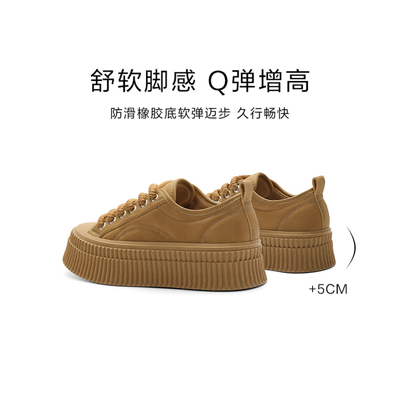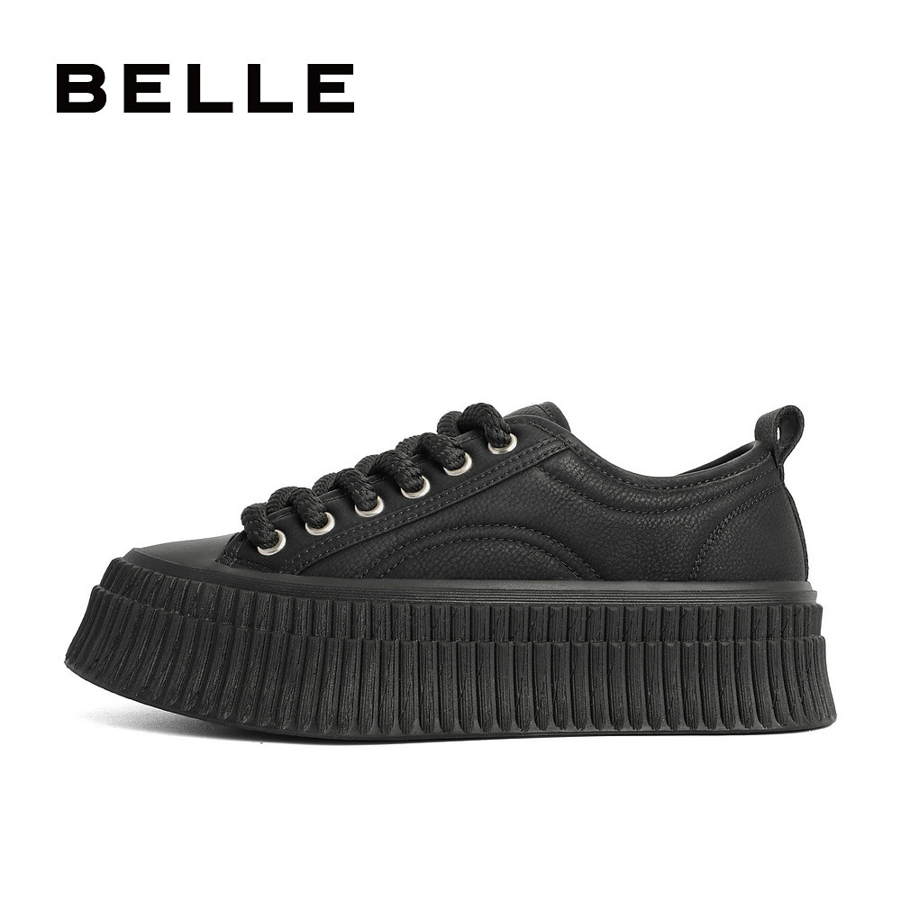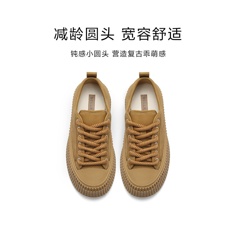 百丽加绒板鞋女新款爆款鞋子运动鞋贝壳饼干底休闲鞋A6C1DAM4