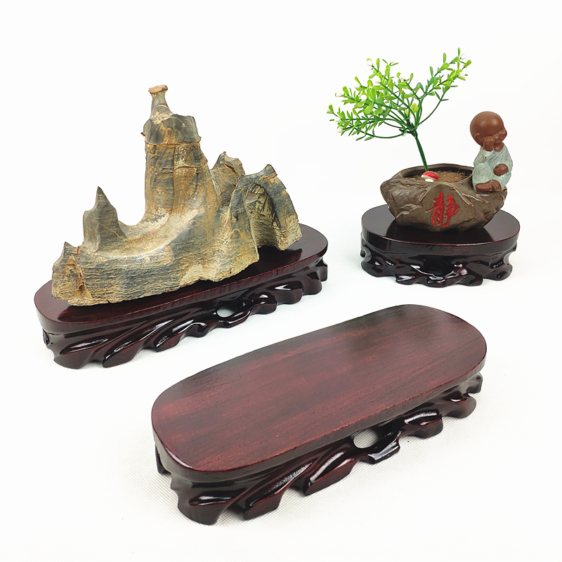 实木雕刻奇石摆件石头底座椭圆形可挖槽佛像文玩盆景香炉木头托架
