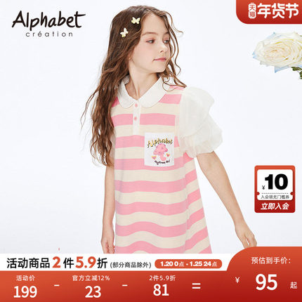 爱法贝女童甜美夏季条纹连衣裙