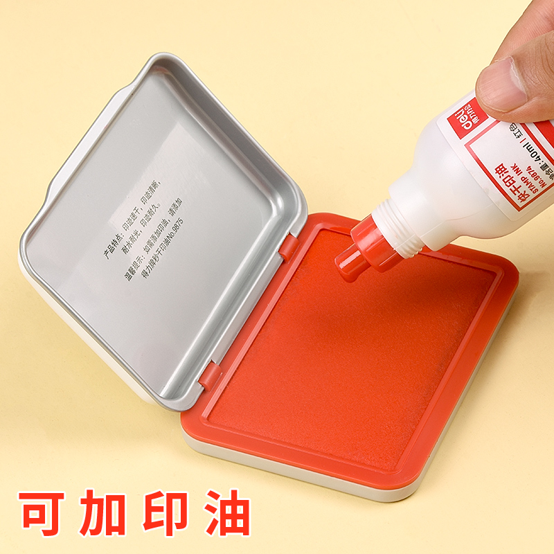 得力9891快干印台印泥印章按手印速干方形红色印台财务会计用品