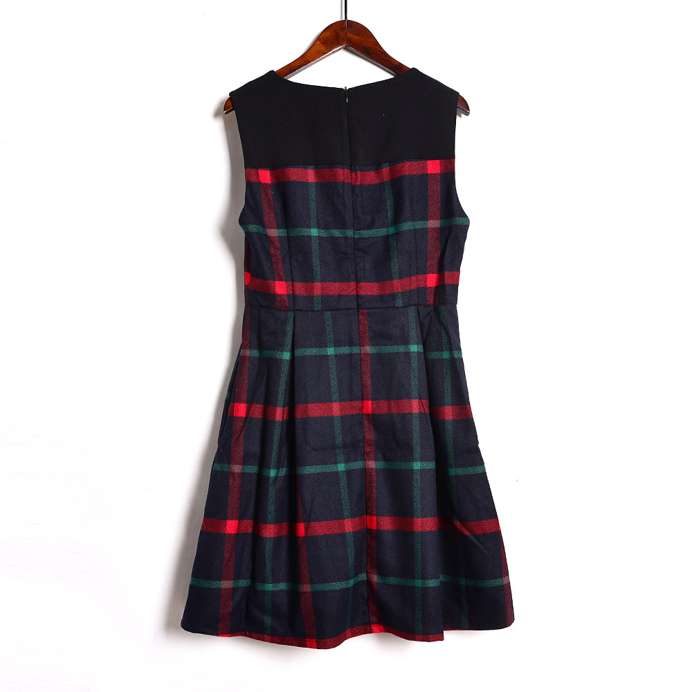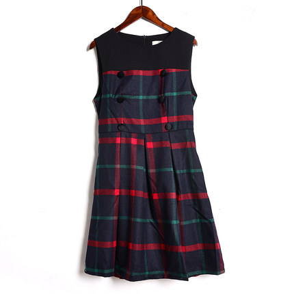 2026年春秋季新品女装韩版时尚圆领套头无袖收腰格子背心连衣裙潮