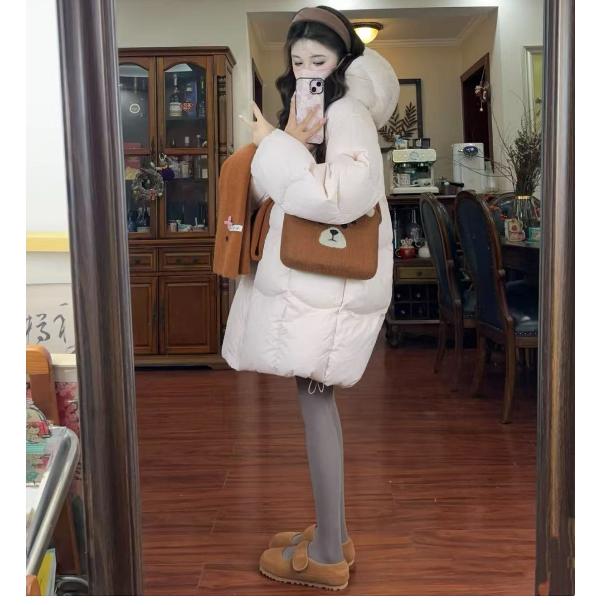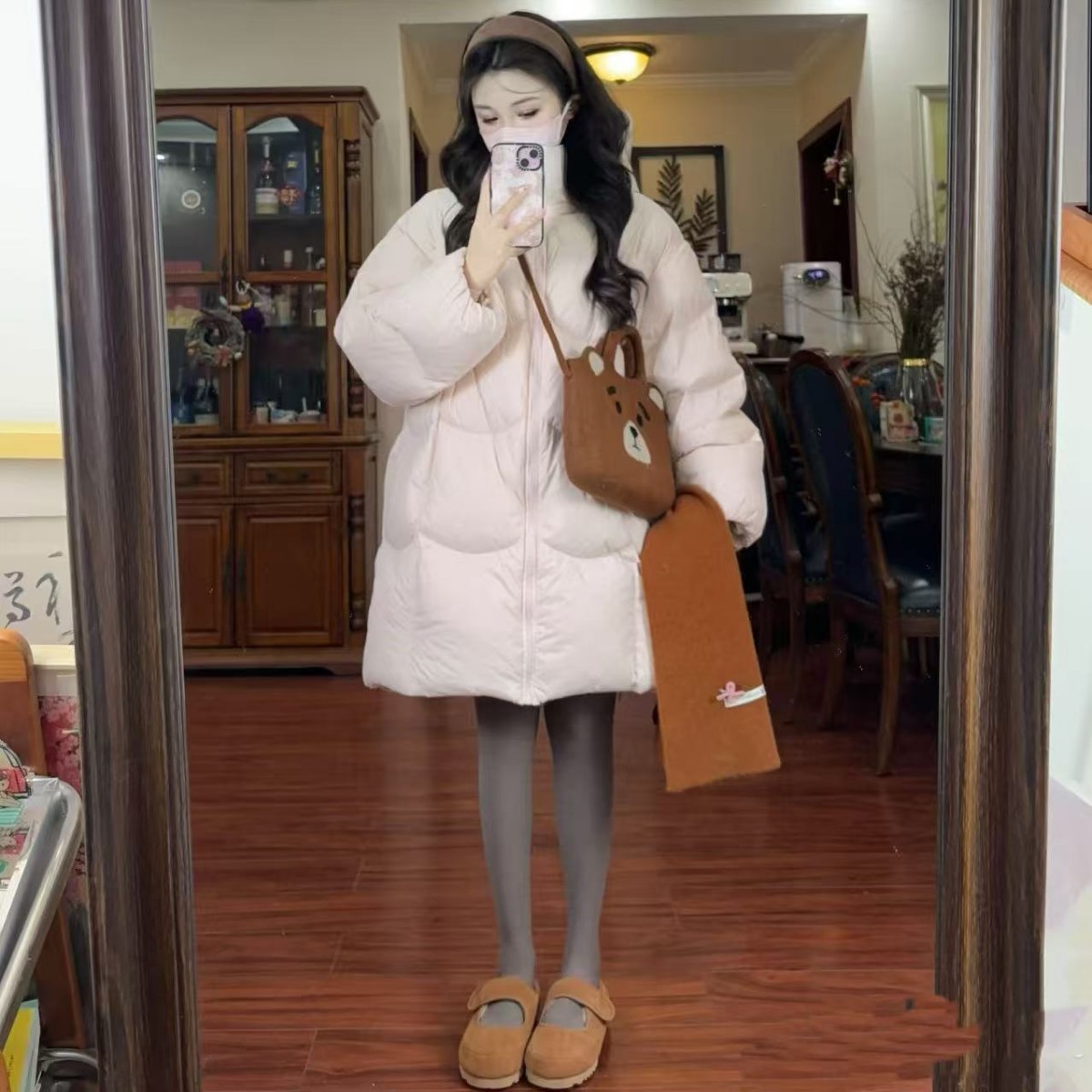 云朵泡芙羽绒棉服女2025冬季新款中长款小个子慵懒感韩系棉袄外套