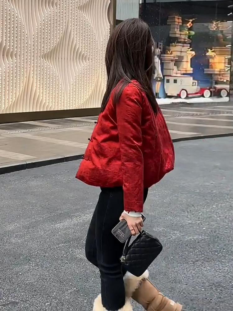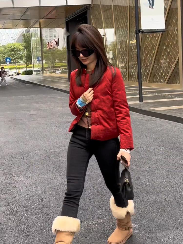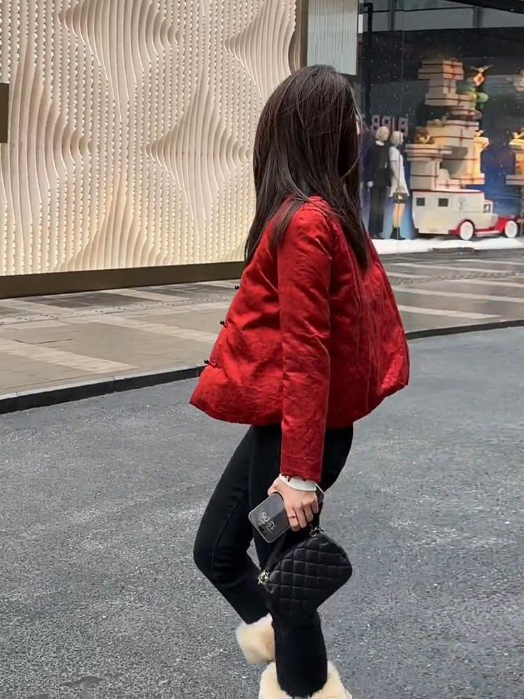新中式国风新年战袍红色棉衣外套女冬季2025新款休闲百搭保暖棉服
