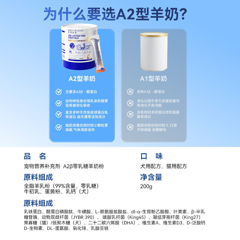 嬉皮狗新西兰A2羊奶粉猫咪狗狗幼犬成犬宠物专用补钙奶粉犬猫通用