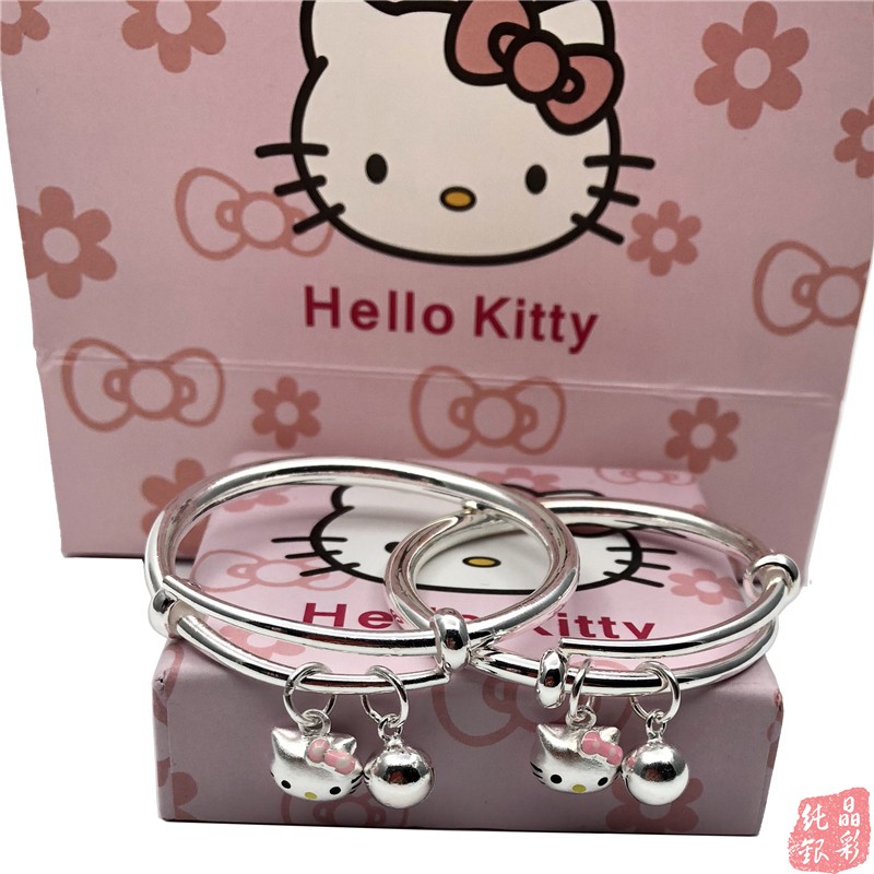 999纯银刻字手镯凯蒂猫铃铛首饰女童宝宝手环新生儿童百日手脚镯
