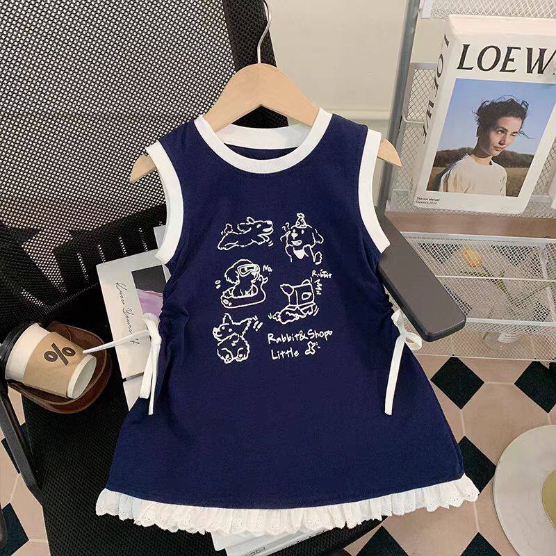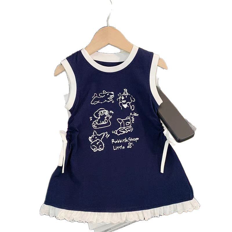 荷叶边女童连衣裙夏季新款女宝宝可爱卡通无袖背心裙时尚T恤裙150