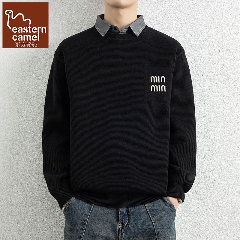 冬季假两件毛衣男士2025新款衬衫领针织衫秋冬内搭打底衫男装上衣