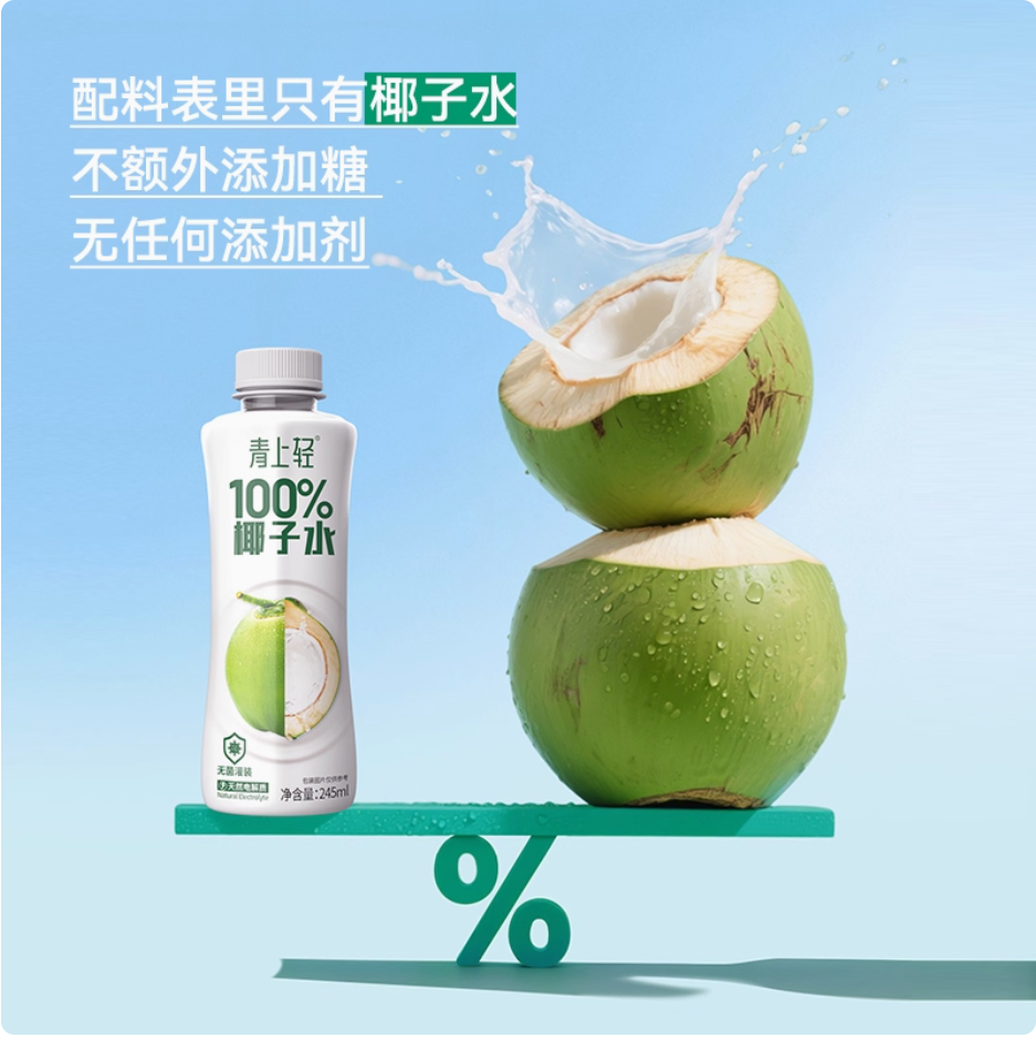 青上轻100%纯椰子水椰子水饮料椰子汁电解质果汁饮料245ml*10瓶