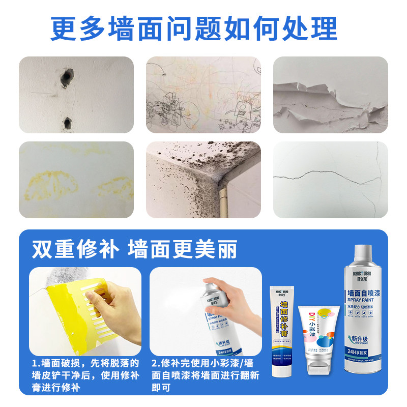 超6000墙面自喷漆防水乳胶漆环保白色去污神器白墙修复修补补墙